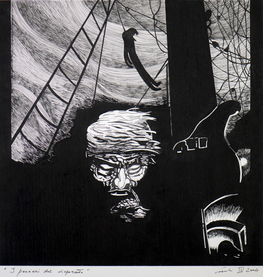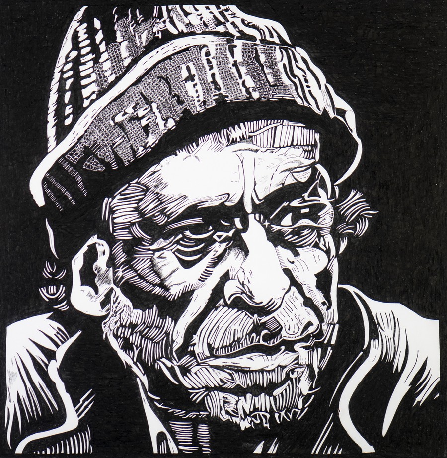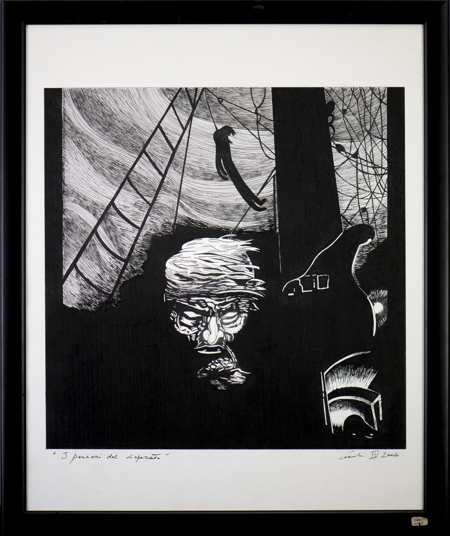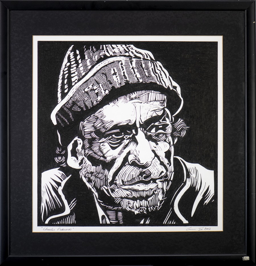 Autore non identificato Charles Bukowski e I pensieri del disperato . 2002. China su cartoncino. Cm 38,00 x 38,00. 2) 34 x 41 cm