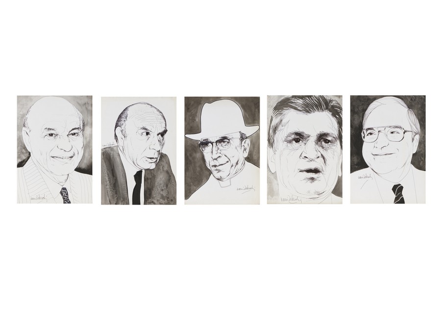 TEDESCHI NANI (n. 1938) LOTTO COMPOSTO DA N. 5 RITRATTI. 1982. tecnica mista su carta. Cm 35,50 x 49,50. Sul retro firma, data e titolo.