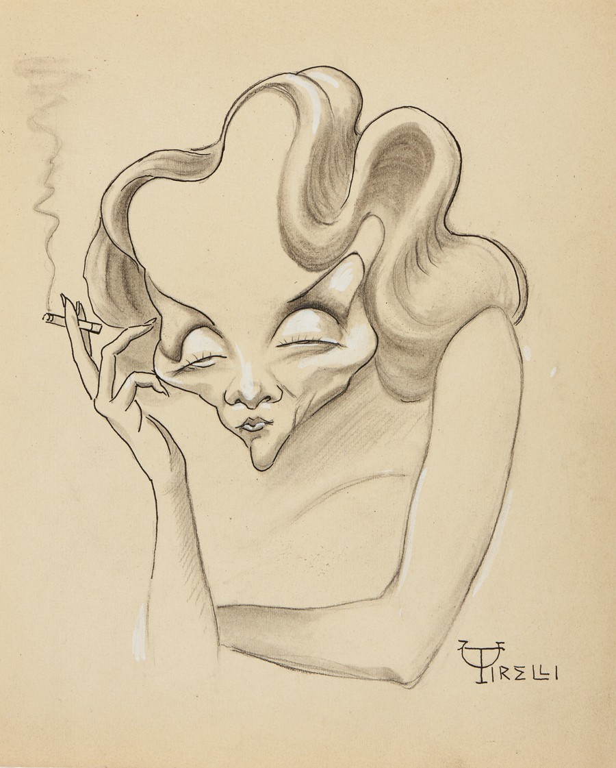 Tirelli Umberto (1871 - 1954) Ritratto di Marlene Dietrich. 1930. grafite su carta. Cm 24,00 x 26,00. firma in basso a destra