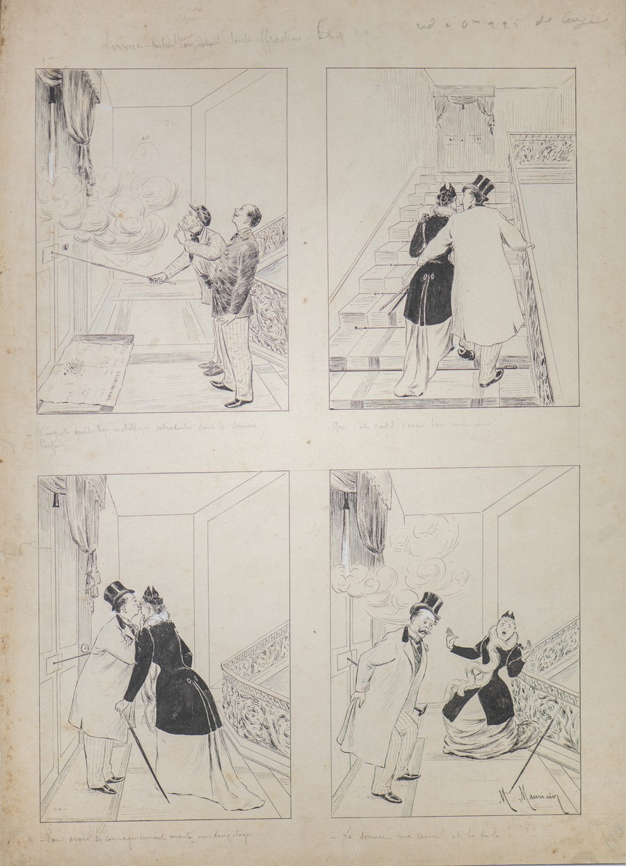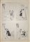 Autore non identificato Serie di vignette umoristiche. china su cartone. Cm 32,00 x 34,00. Firma non identificata in basso a destra