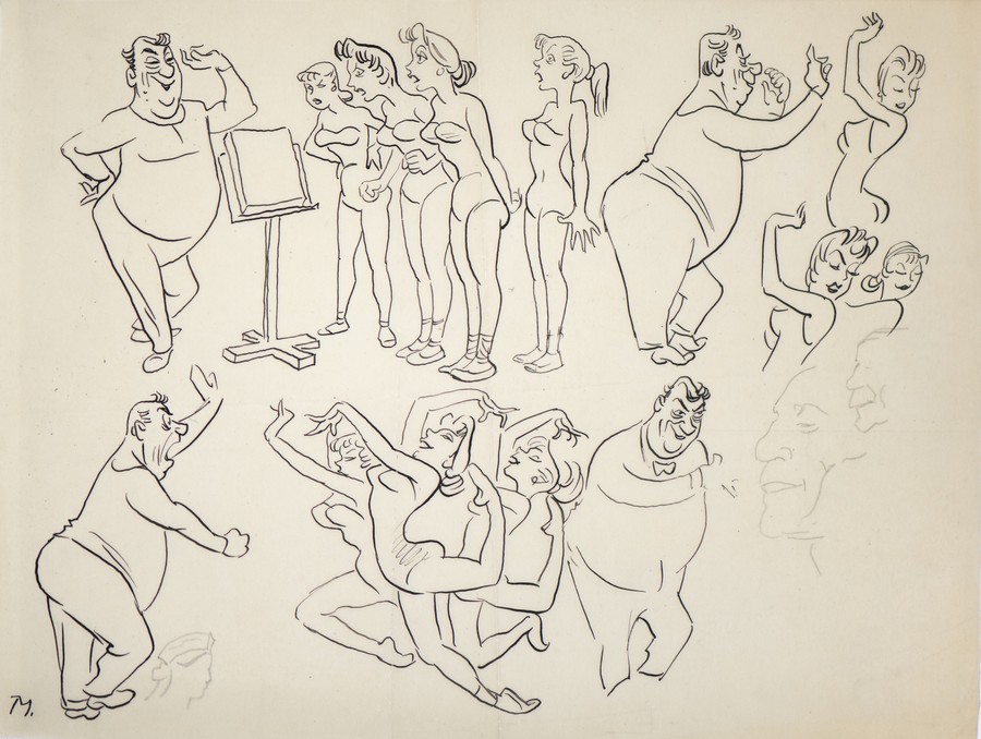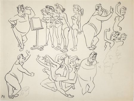 MANCA GIOVANNI (1889 - 1984) "Insegnante di ballo". china e grafite su carta lucida trasparente. Cm 35,00 x 27,00. siglato in basso a sinistra