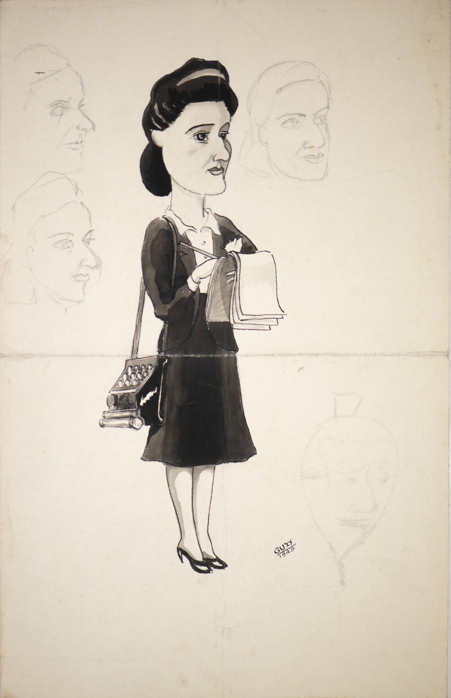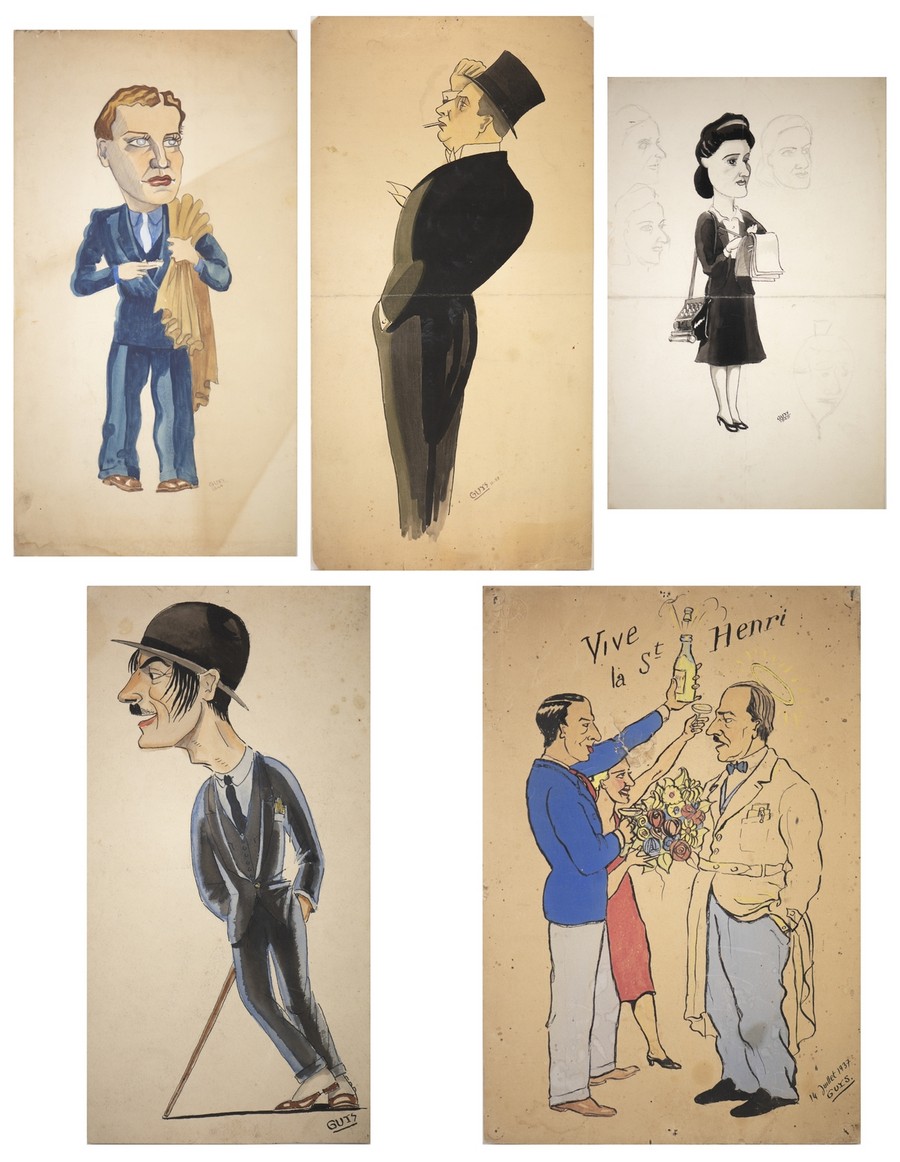 Guys 5 VIGNETTE SATIRICHE FRANCESI . 1944. China e tempera su carta. Cm 26,00 x 48,00. 2) 15 x 30 cm