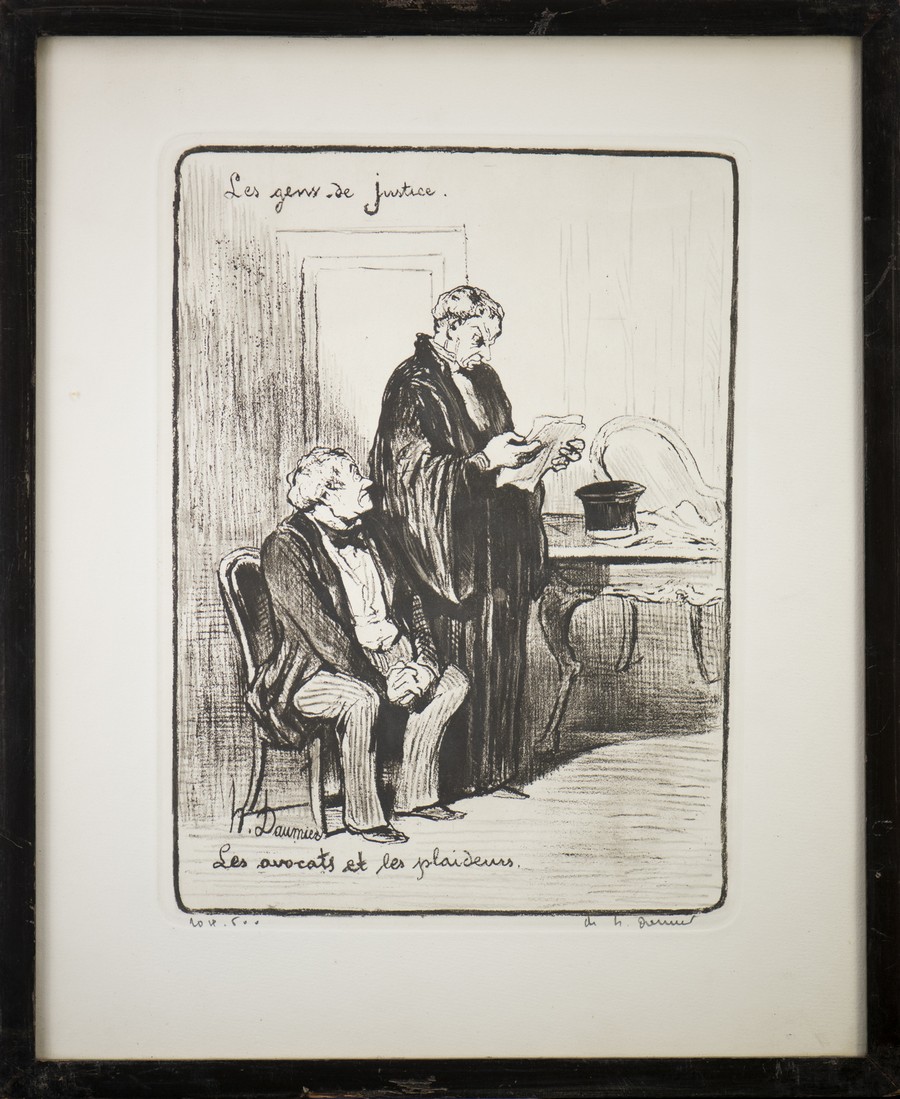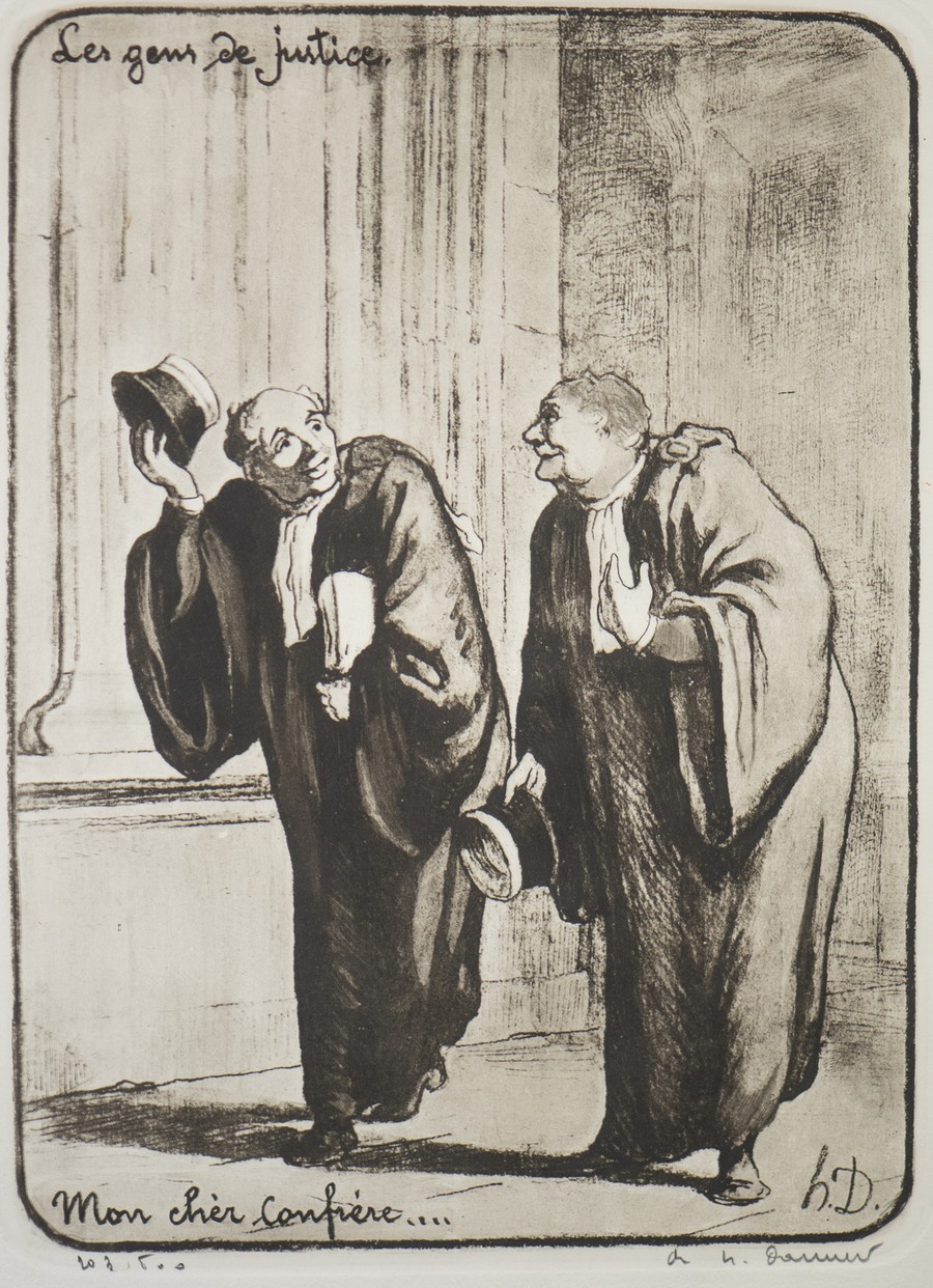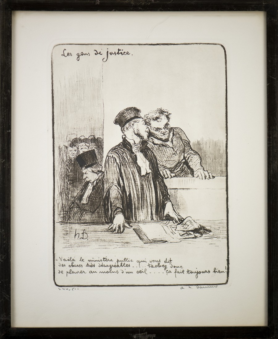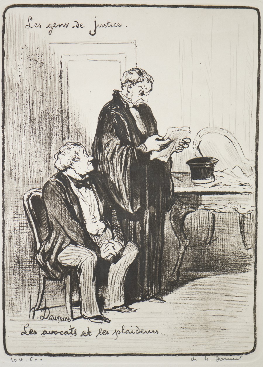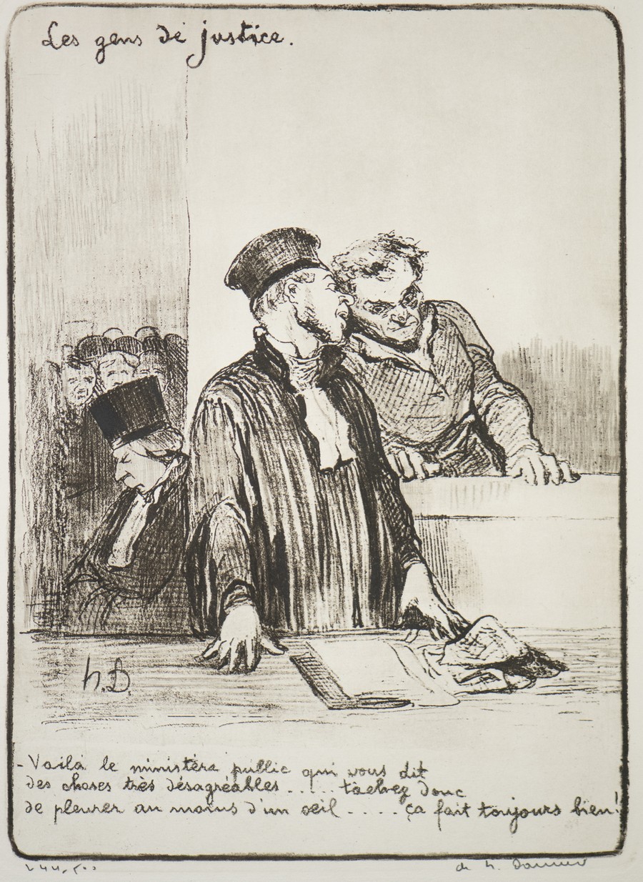 I disegni caricaturali daumeriani, aventi ad oggetto avvocati e giudici nell’atto di rapportarsi con il popolo, furono dapprima pubblicati sul giornale satirico Le Chiarivari nel 1848 e, successivamente, divennero un volume: Le Gens de Justice
