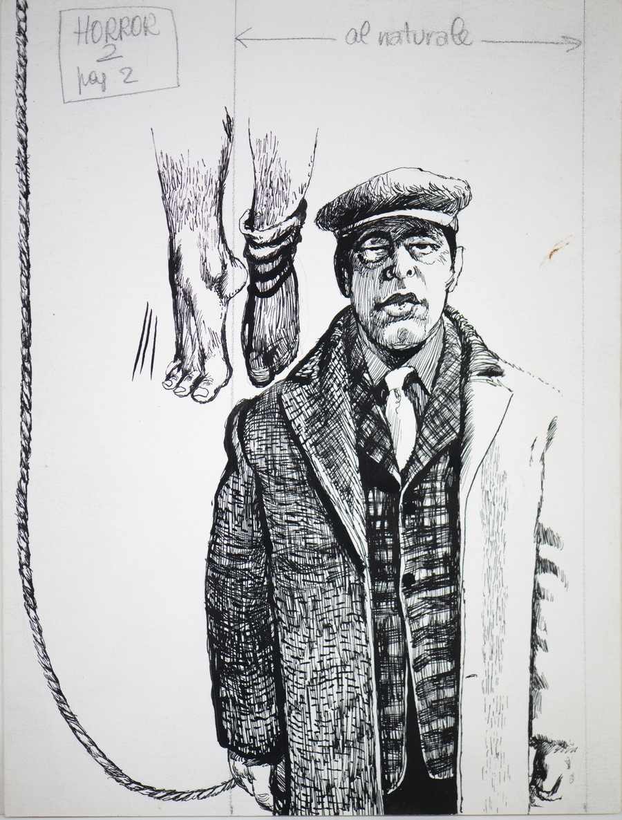 Attribuito a Marco Rostagno Illustrazione per la rivista Horror della Gino Sansoni. china su carta spessa. Cm 21,00 x 28,00. Tavola per la pagina 2 della rivista Horror attribuita molto probabilmente a Mauro Rostagno