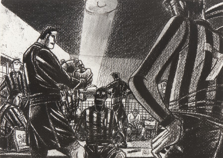 CICARÈ MAURO La partita di calcio. 2007. tecnica mista su carta. Cm 35,00 x 25,00. firmato in basso a destra
