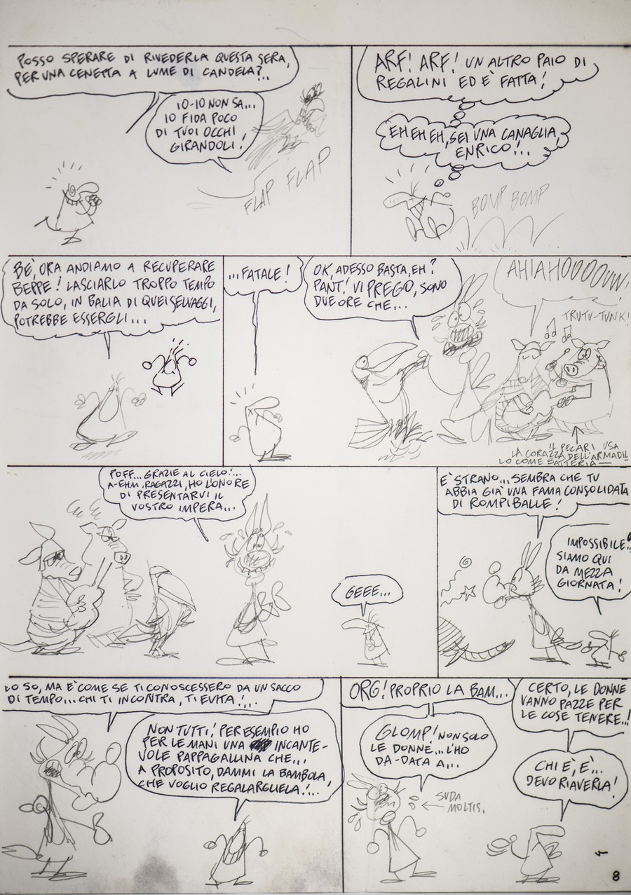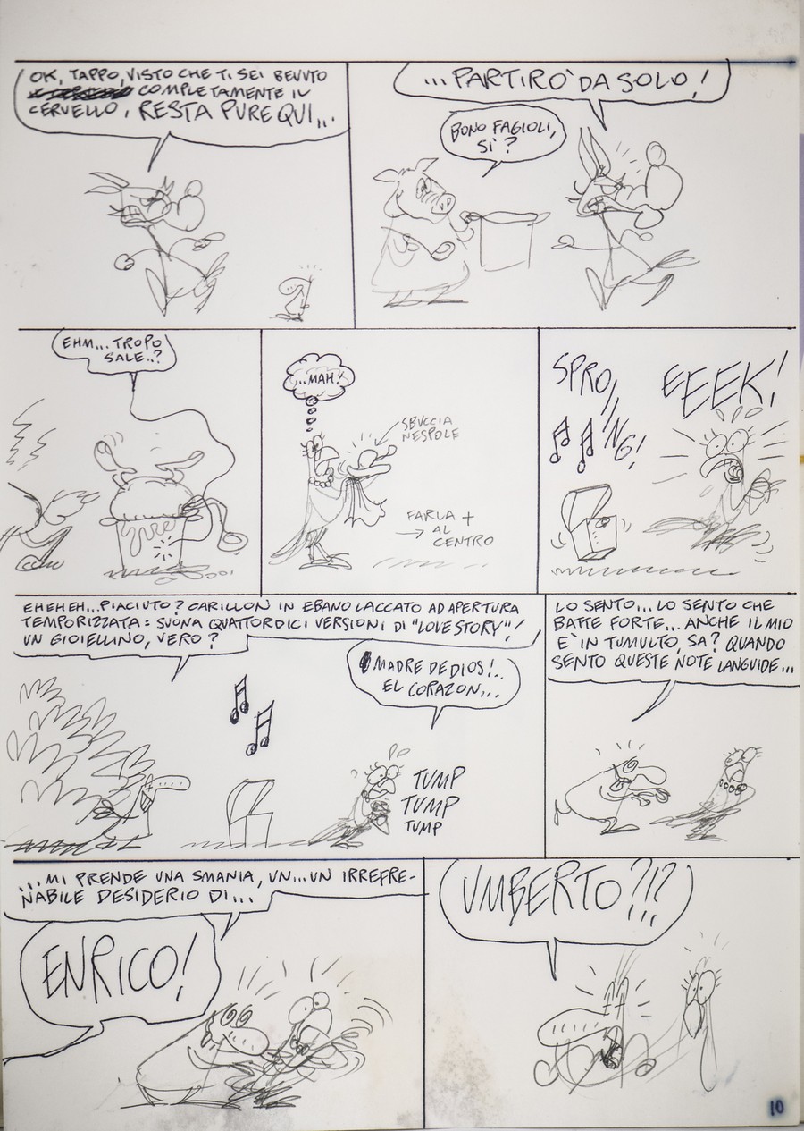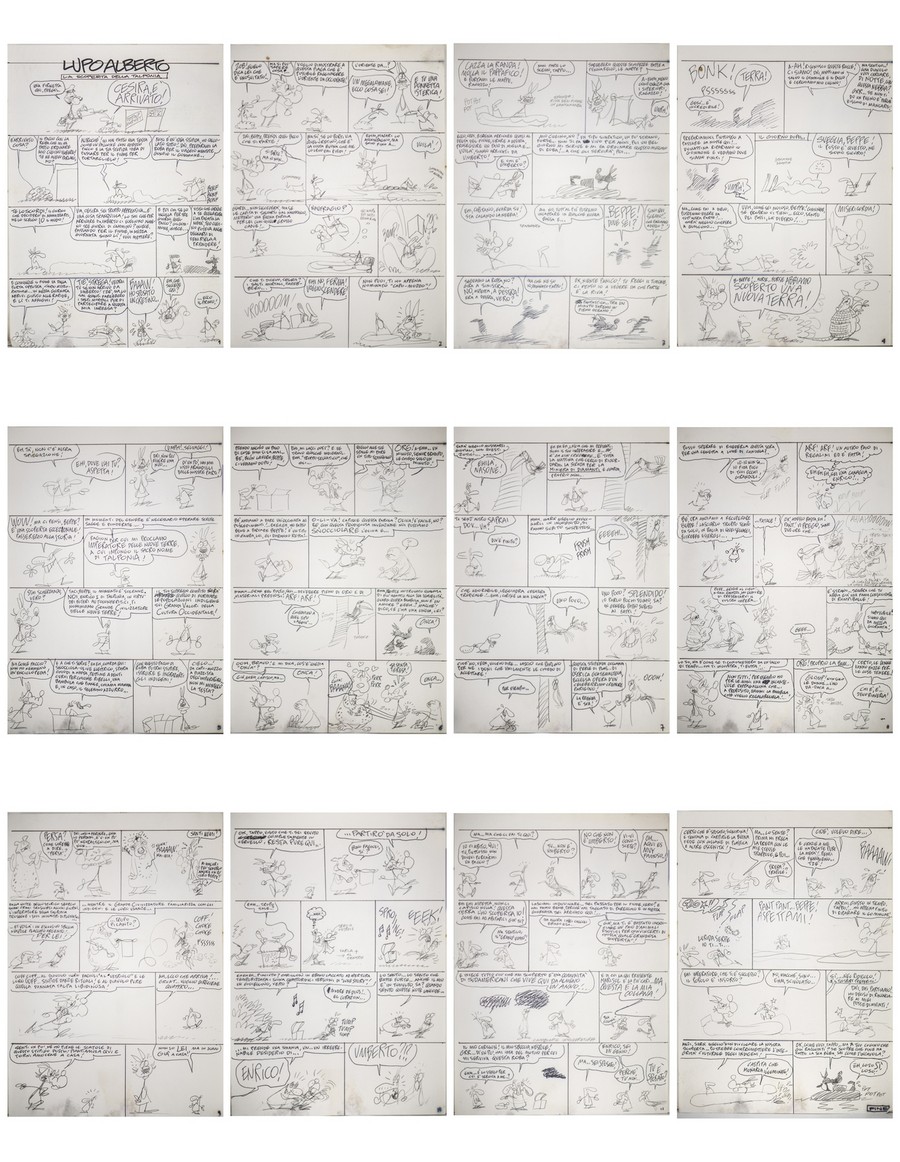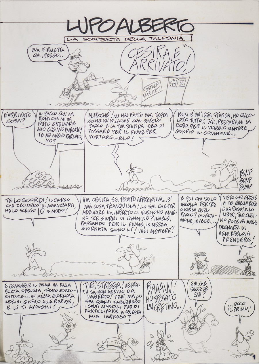 AA.VV Lupo Alberto in La scoperta della Talponia. . 1993. pennarello nero e grafiti su carta. Cm 21,00 x 30,00. Non firmato.