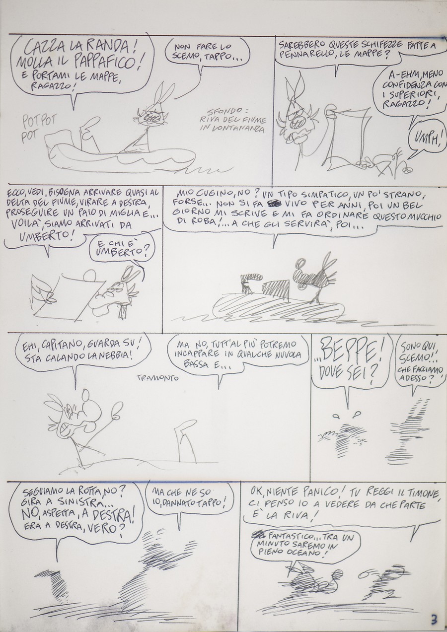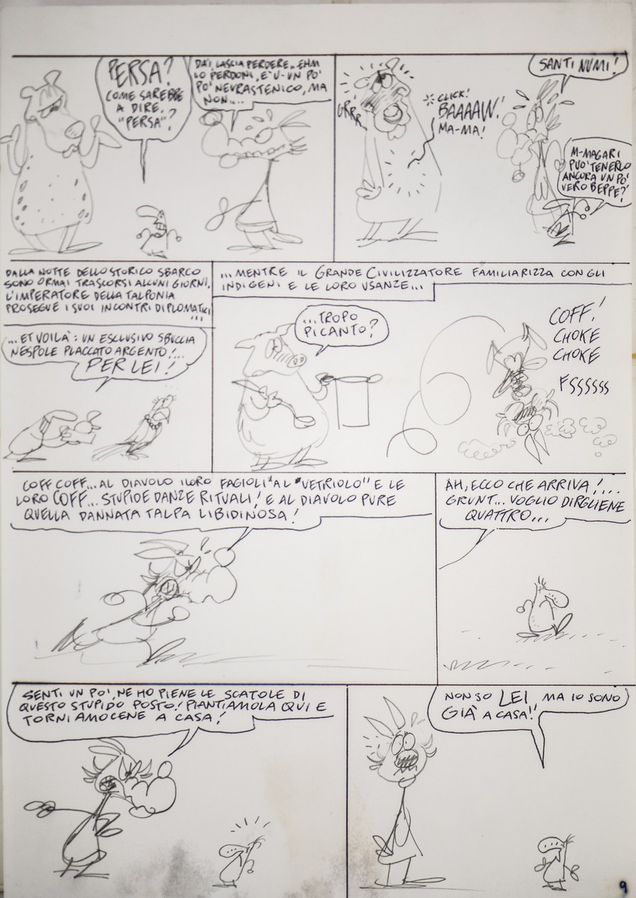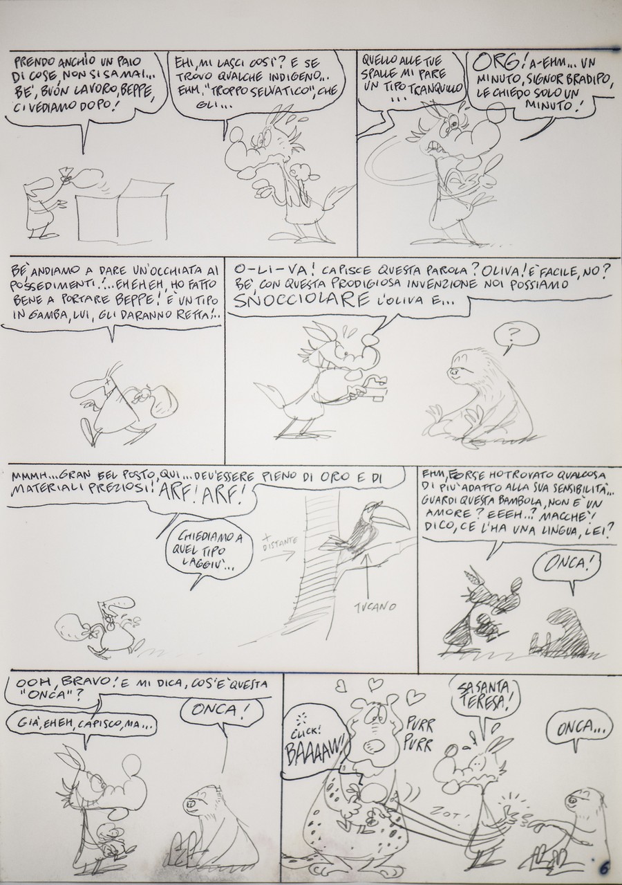 AA.VV Lupo Alberto in La scoperta della Talponia. . 1993. pennarello nero e grafiti su carta. Cm 21,00 x 30,00. Non firmato.