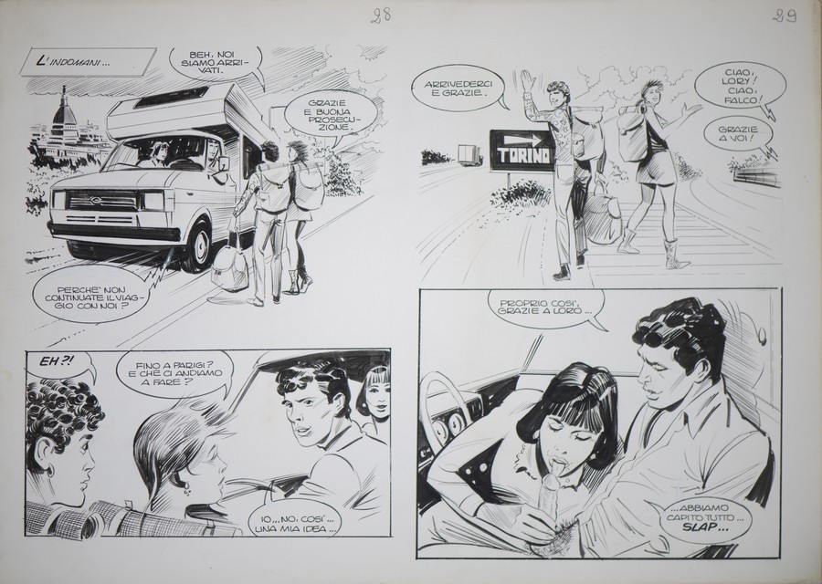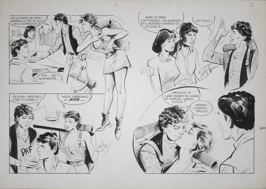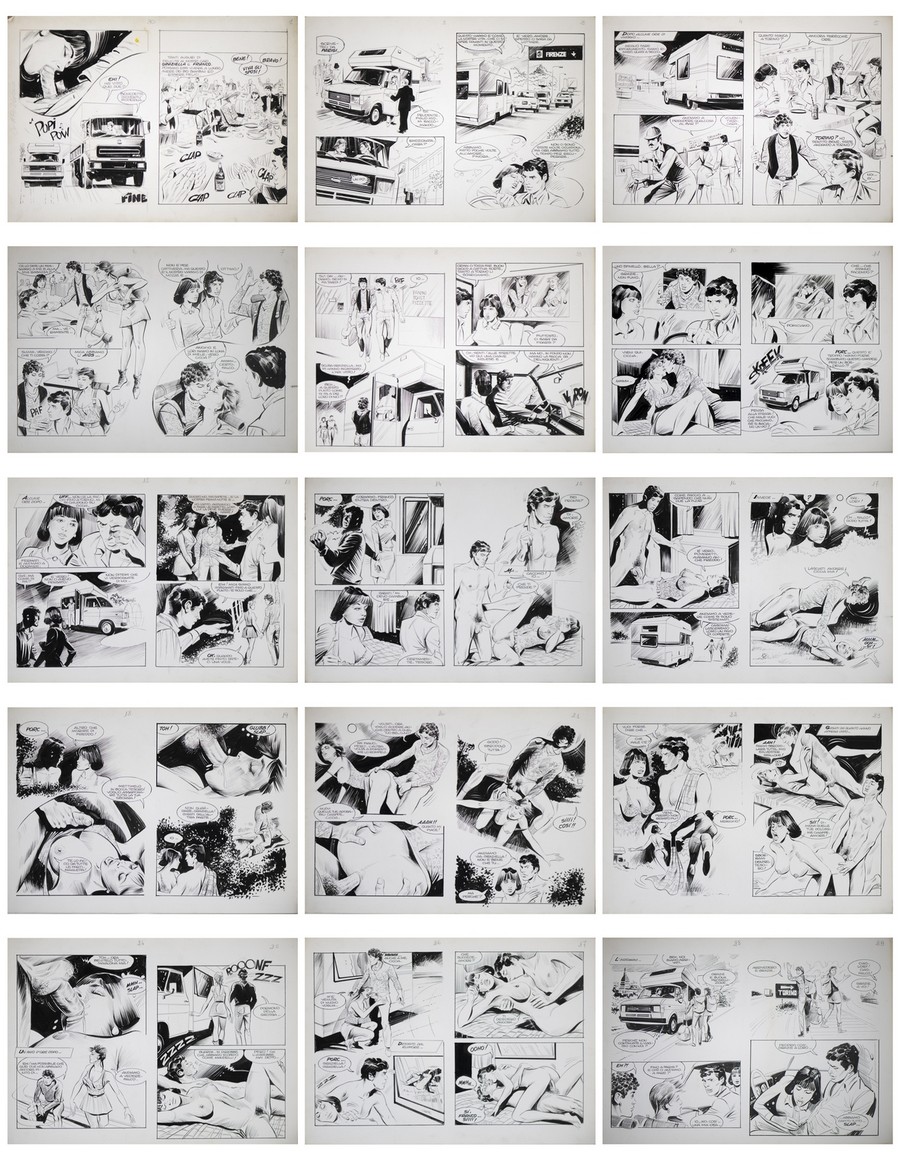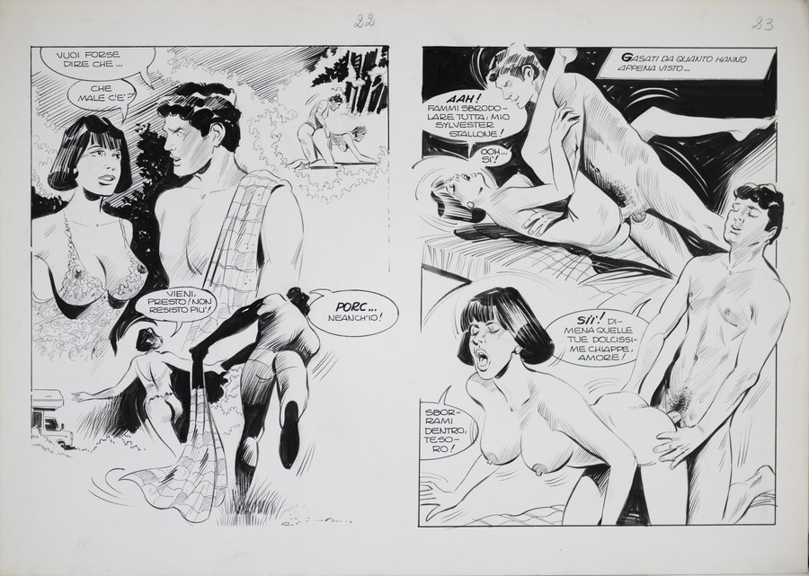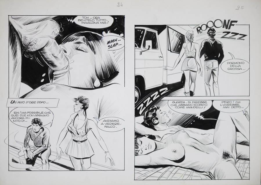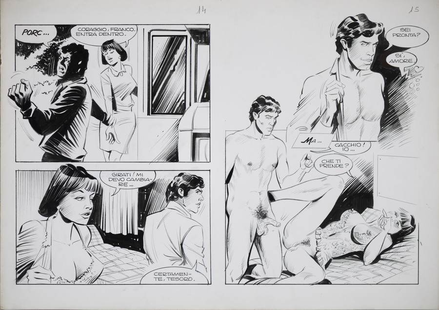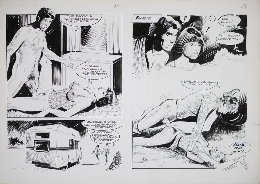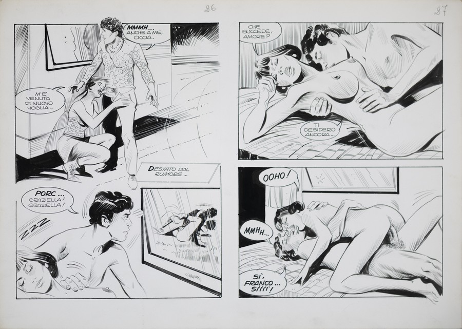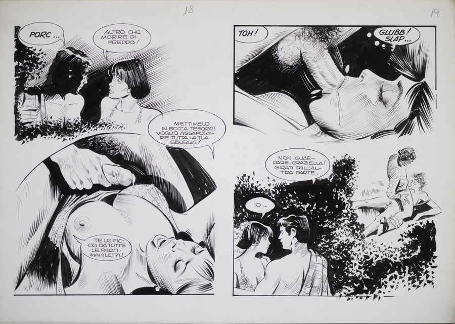 Gabaglio Adriano Una mitica storia erotica e a luci rosse. China su carta. Cm 35,50 x 25,50. Dalla matita brillante e modernissima di un autore di culto. Una storia nera ed erotica della Edilfumetto.