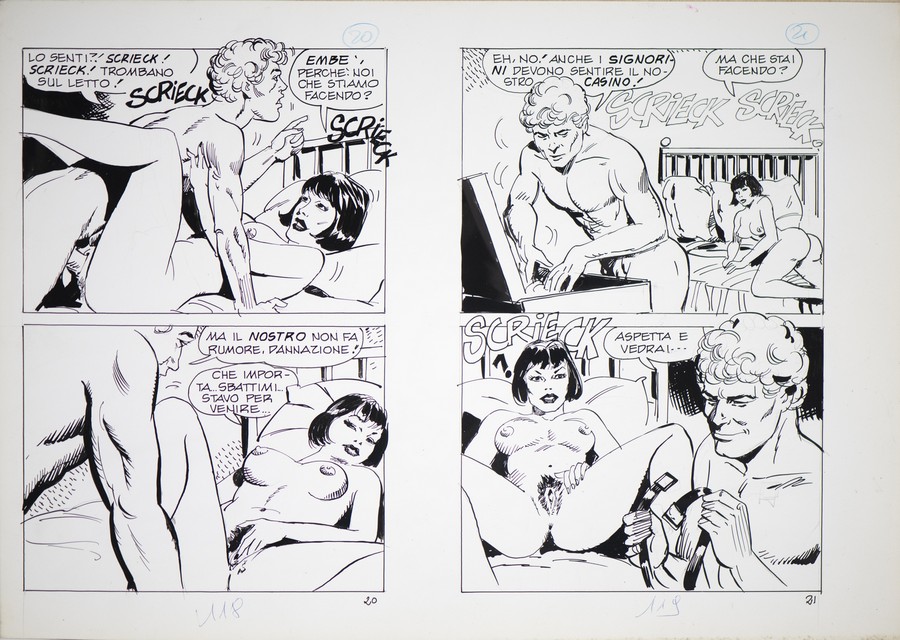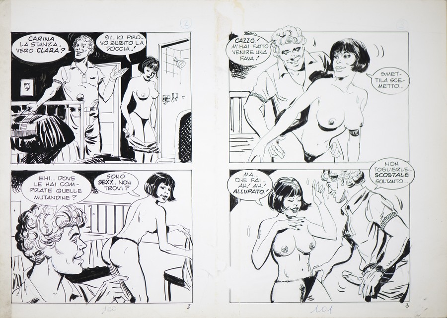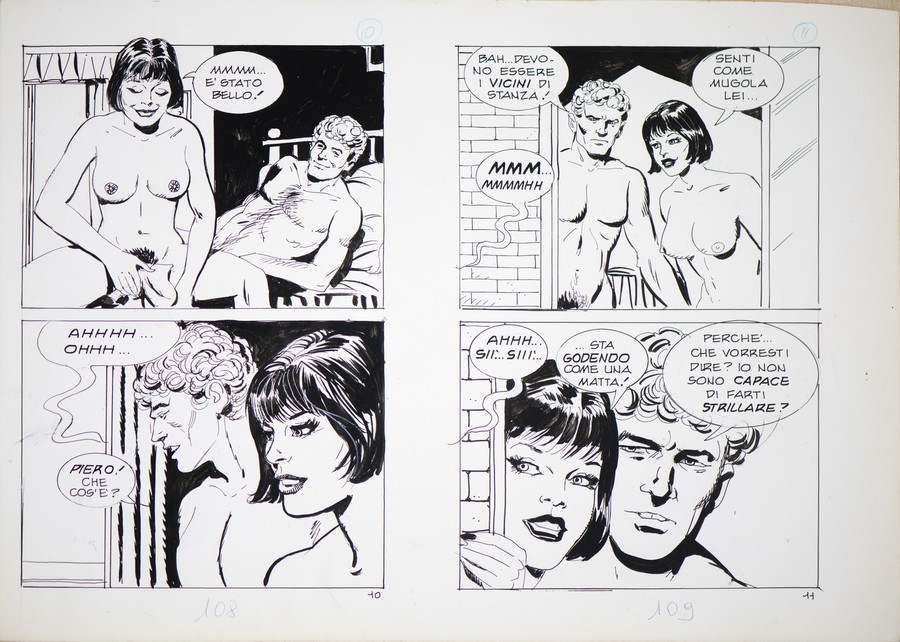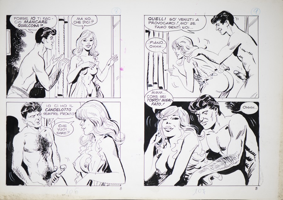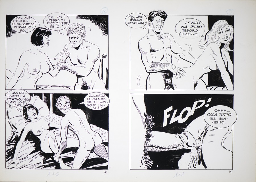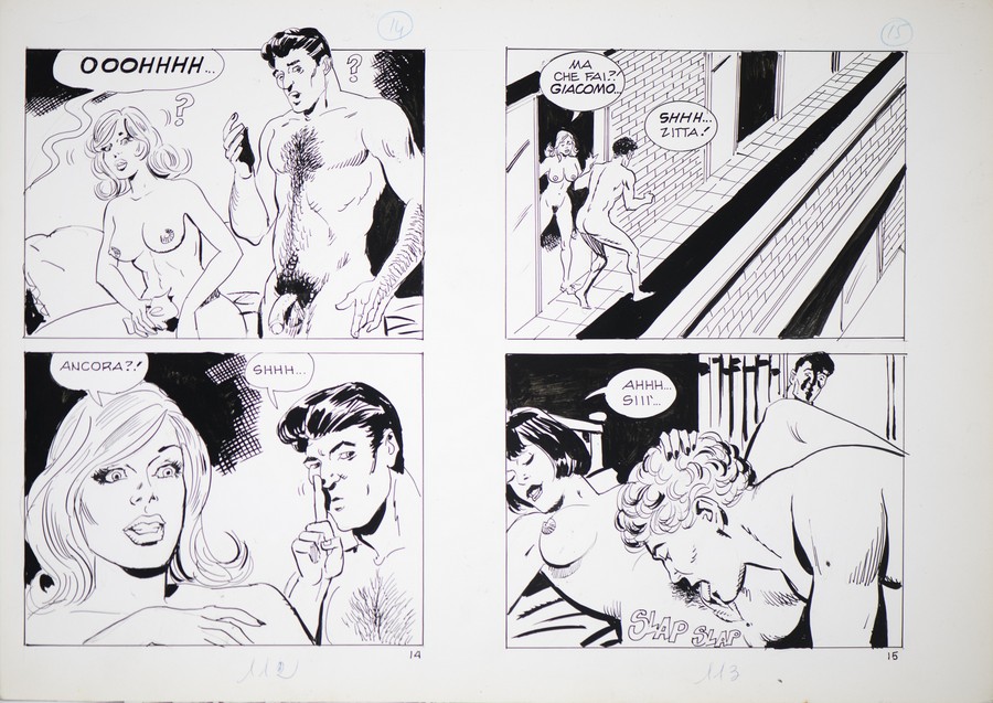 Pavone Ivo (1929 - 2020) BOTTA E RISPOSTA. ANCORA UNA STORIA EROTICA DEL GRANDE DISEGNATORE. China su carta. Cm 34,00 x 24,00. Una delle rare storielle erotiche scritte e disegnate dal grande Ivo Pavone negli anni 70/80 che venivano pubblicate dalla Edilfumetto.