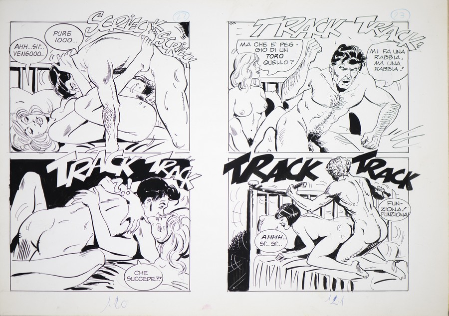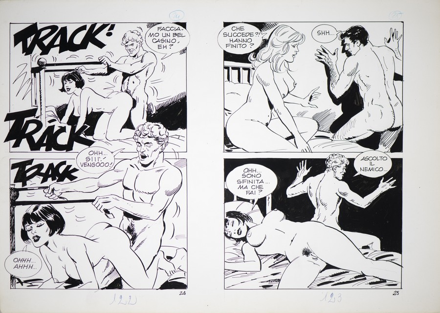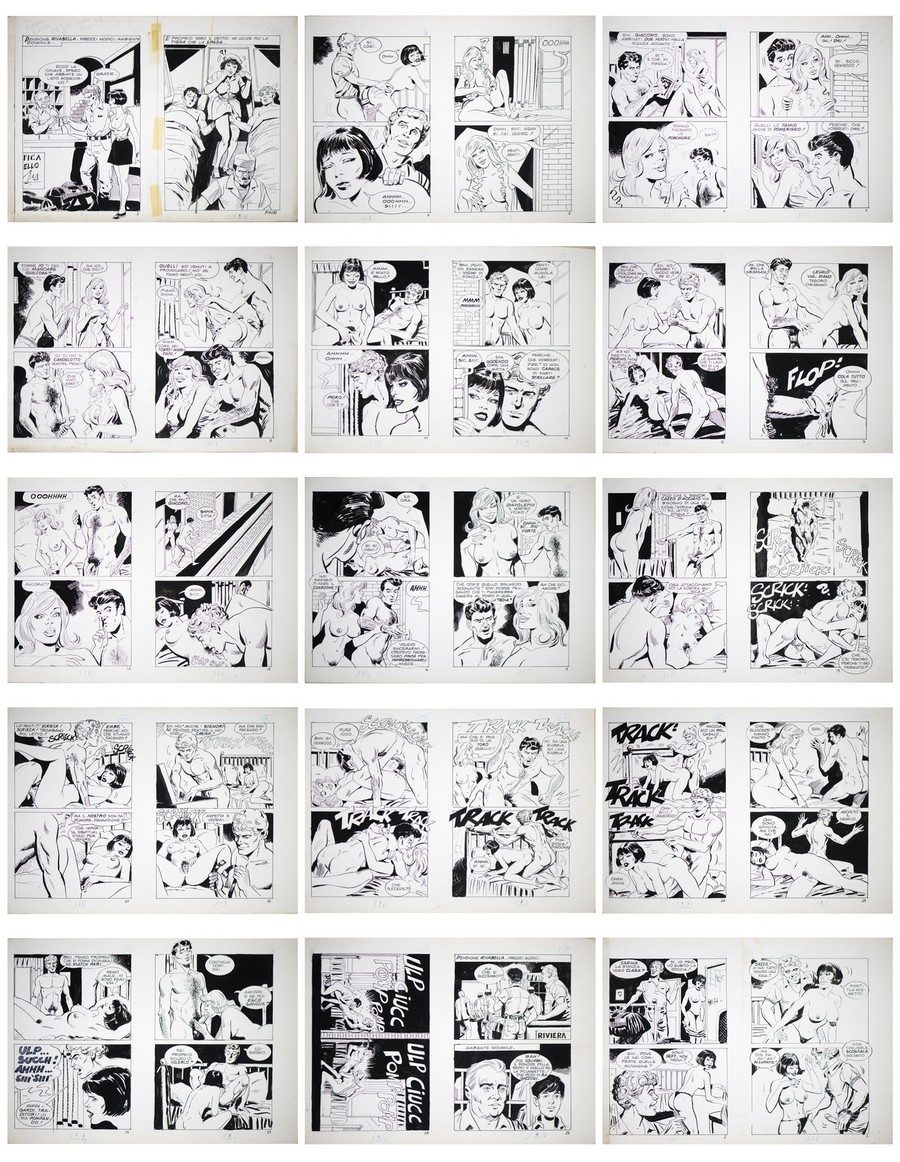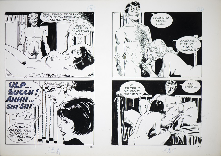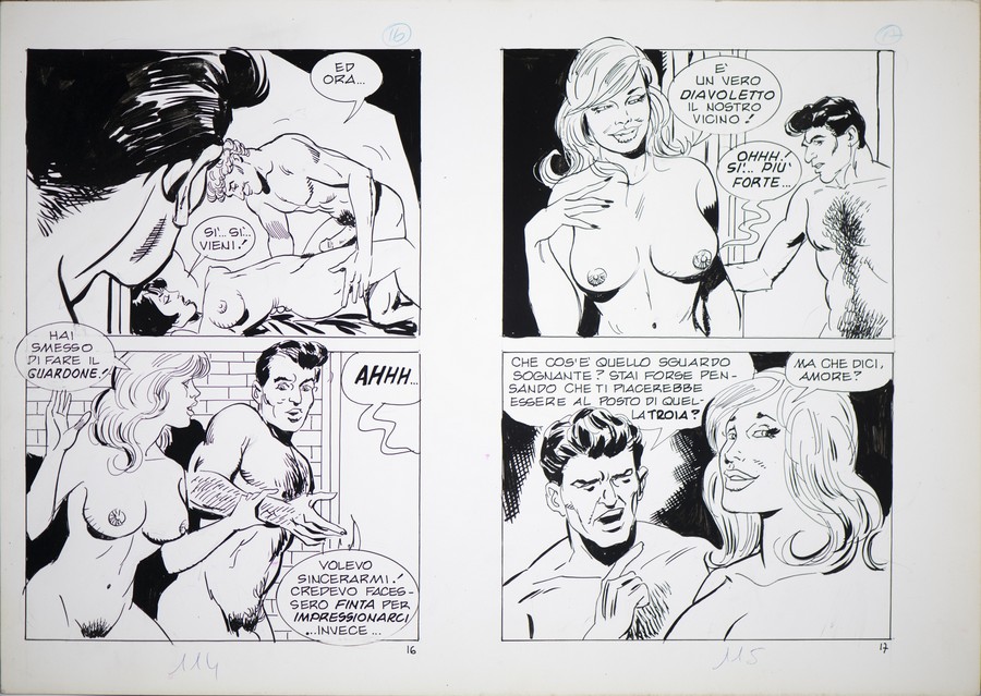 Pavone Ivo (1929 - 2020) BOTTA E RISPOSTA. ANCORA UNA STORIA EROTICA DEL GRANDE DISEGNATORE. China su carta. Cm 34,00 x 24,00. Una delle rare storielle erotiche scritte e disegnate dal grande Ivo Pavone negli anni 70/80 che venivano pubblicate dalla Edilfumetto.