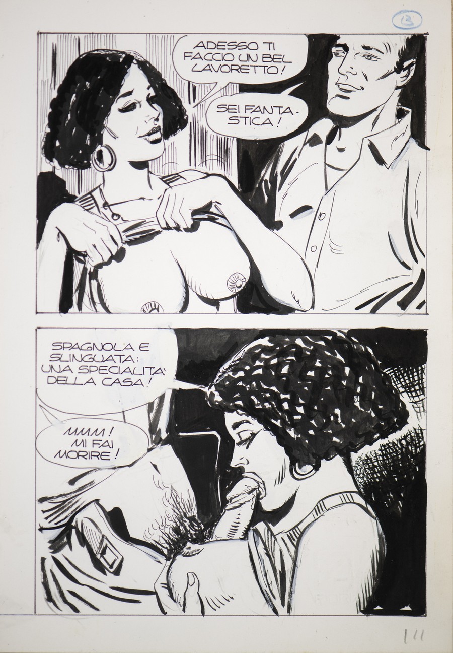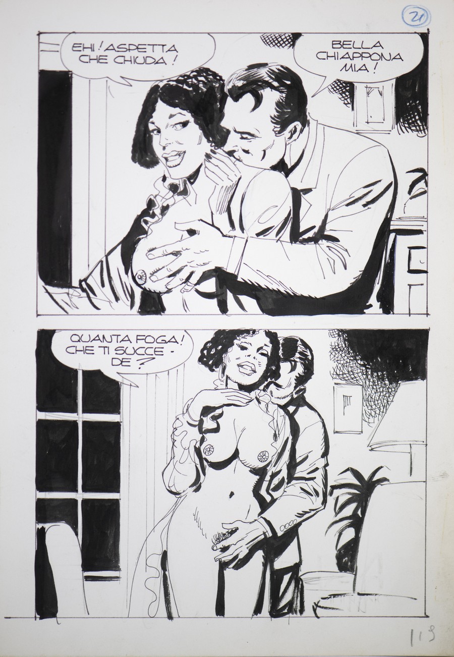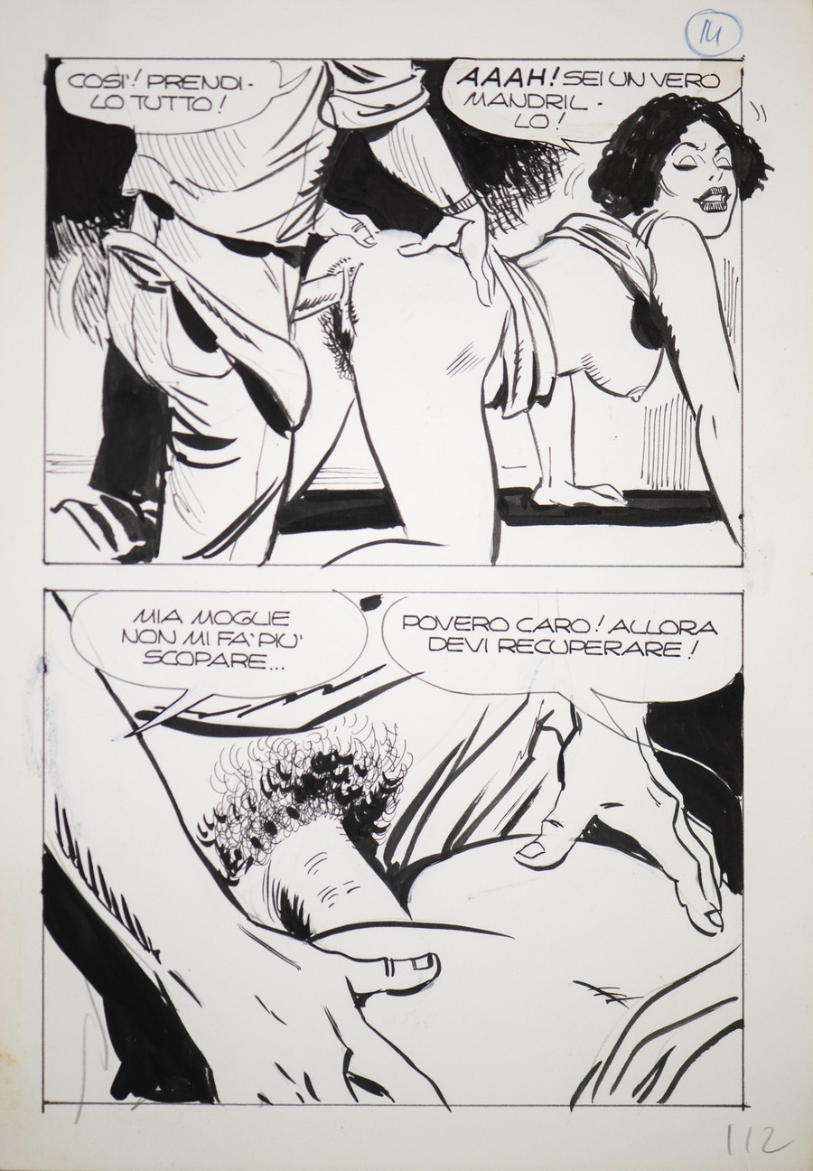 Pavone Ivo (1929 - 2020) DELITTO IMPERFETTO. . China su carta. Cm 16,00 x 24,50. Una delle rare storie erotiche di cronaca nera scritte e disegnate dal grande Ivo Pavone negli anni 70/80 che venivano pubblicate dalla Edilfumetto. Con pagine di straordinario disegno.