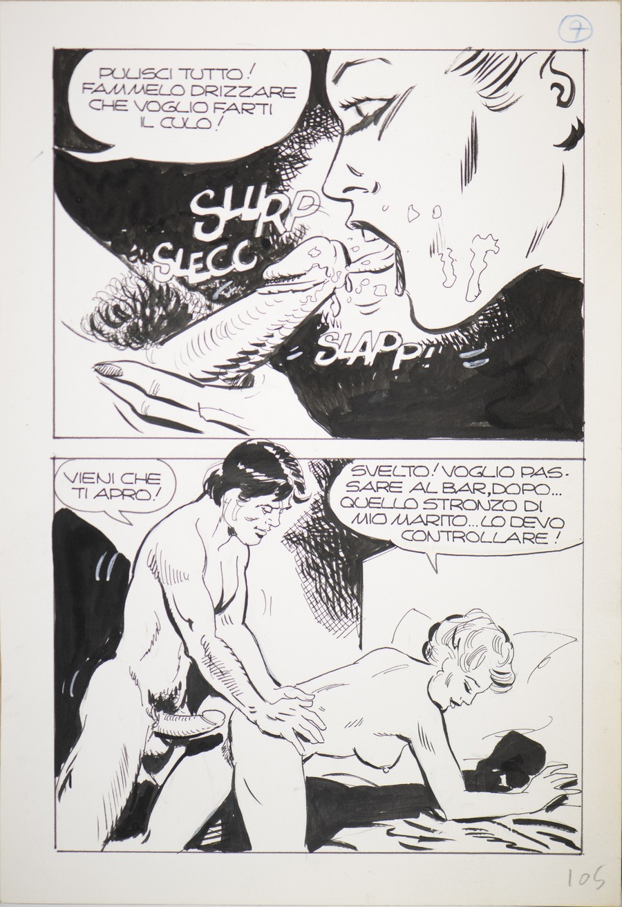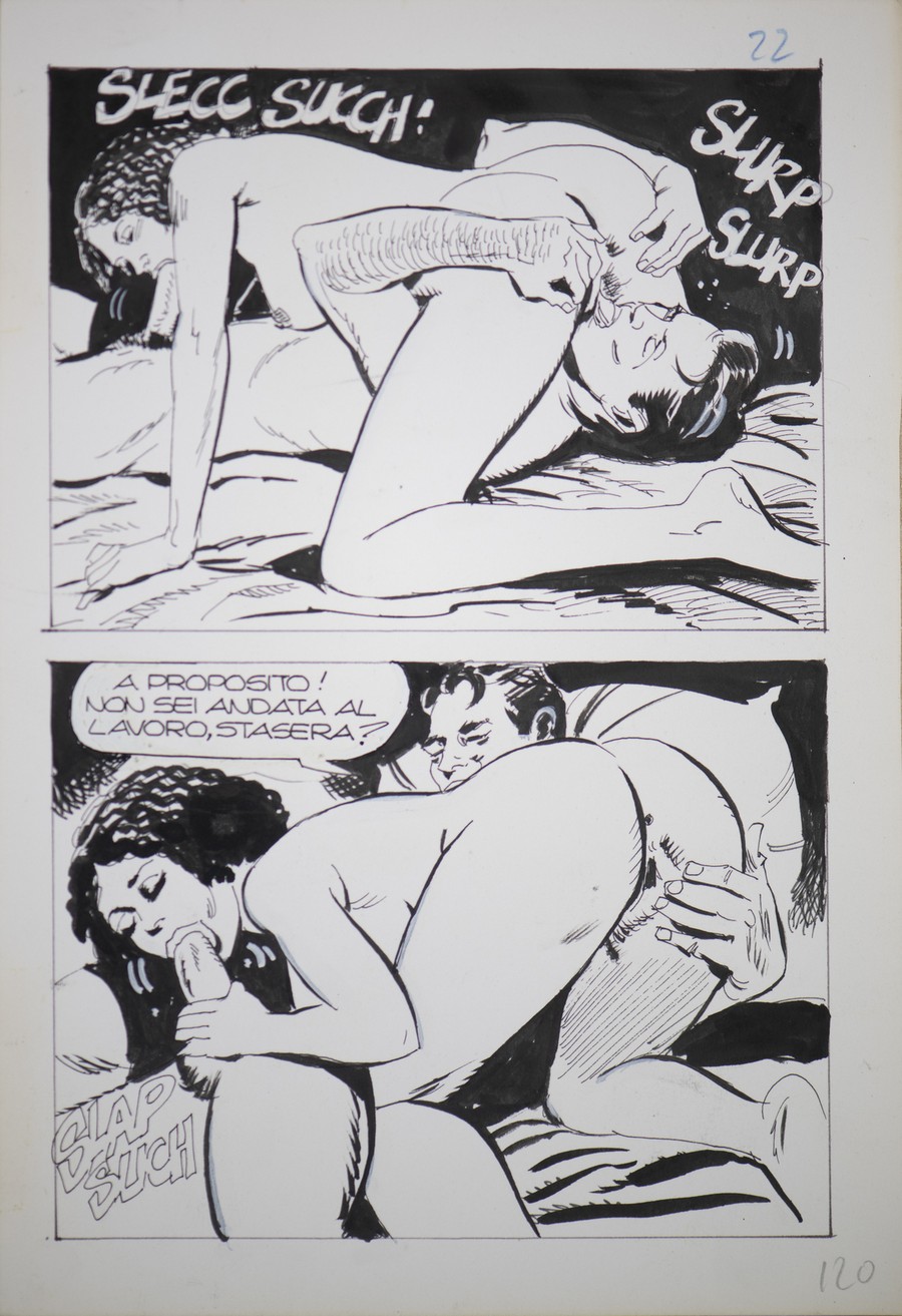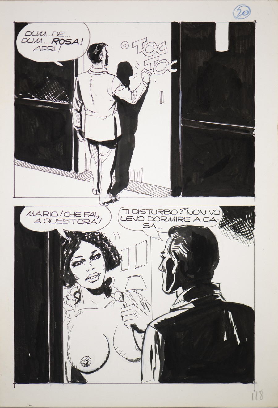 Pavone Ivo (1929 - 2020) DELITTO IMPERFETTO. . China su carta. Cm 16,00 x 24,50. Una delle rare storie erotiche di cronaca nera scritte e disegnate dal grande Ivo Pavone negli anni 70/80 che venivano pubblicate dalla Edilfumetto. Con pagine di straordinario disegno.