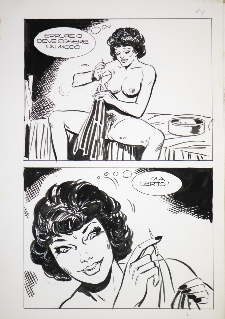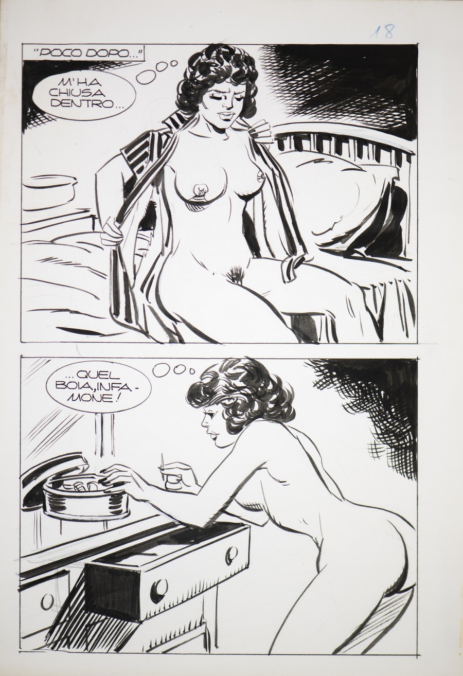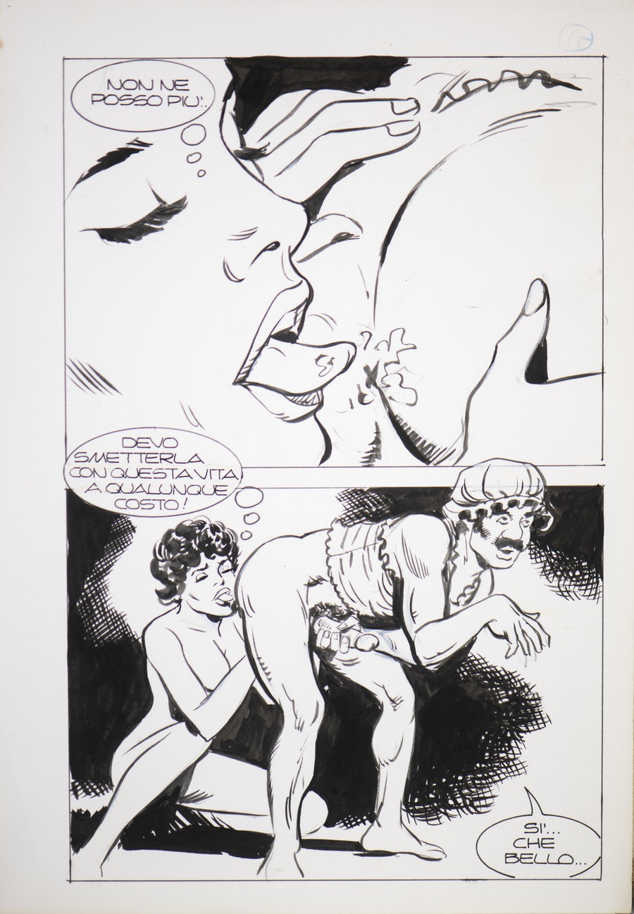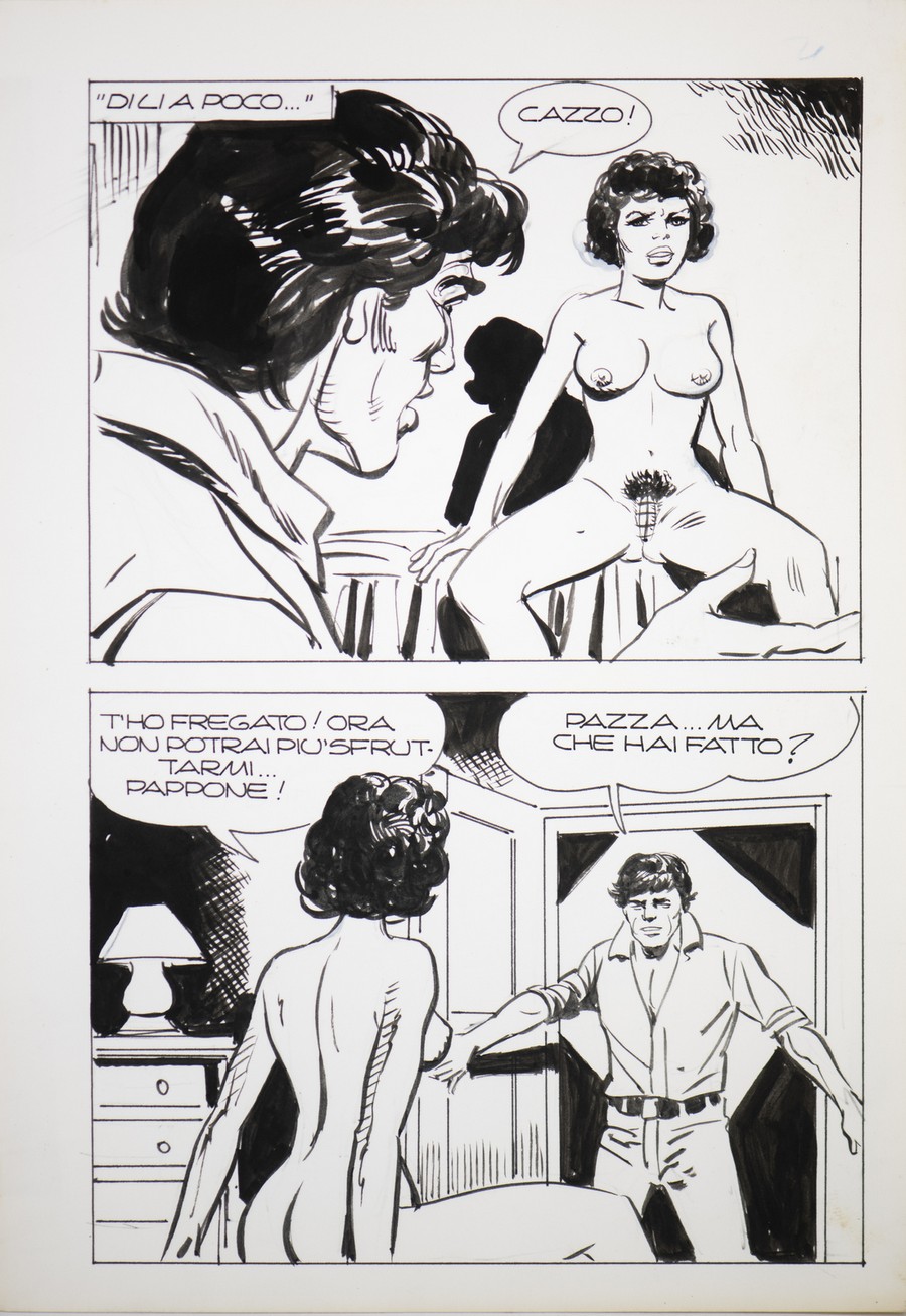 Pavone Ivo (1929 - 2020) Io e mio fratello. . China su carta. Cm 17,00 x 25,00. Una delle rare storie erotiche scritte e disegnate dal grande Ivo Pavone negli anni 70/80.