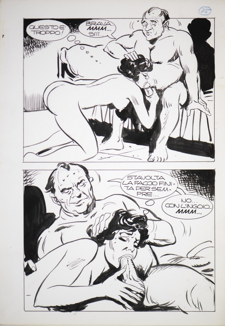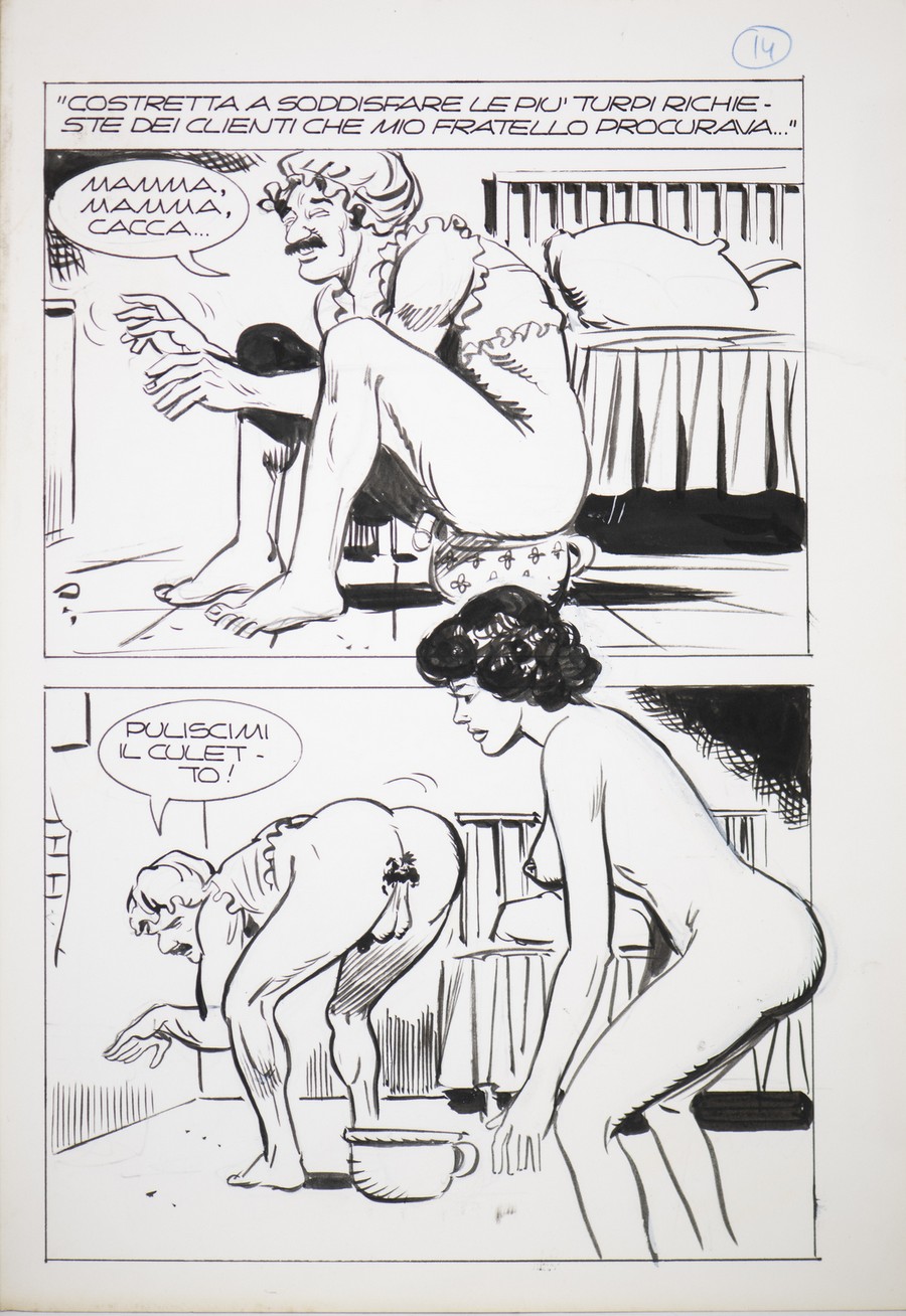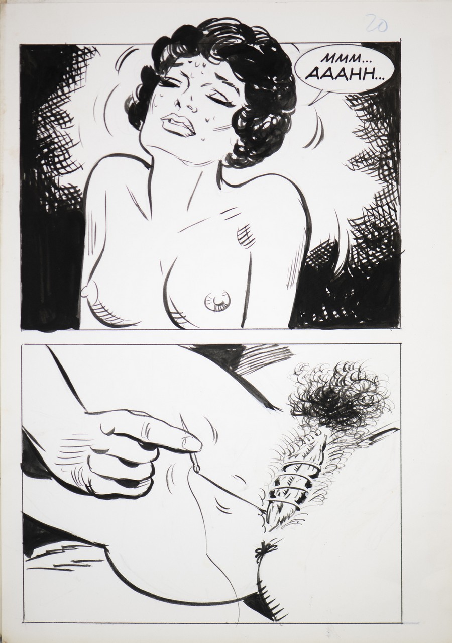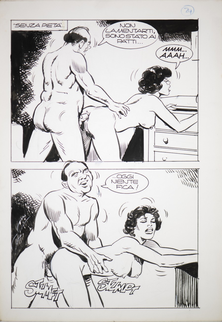 Pavone Ivo (1929 - 2020) Io e mio fratello. . China su carta. Cm 17,00 x 25,00. Una delle rare storie erotiche scritte e disegnate dal grande Ivo Pavone negli anni 70/80.