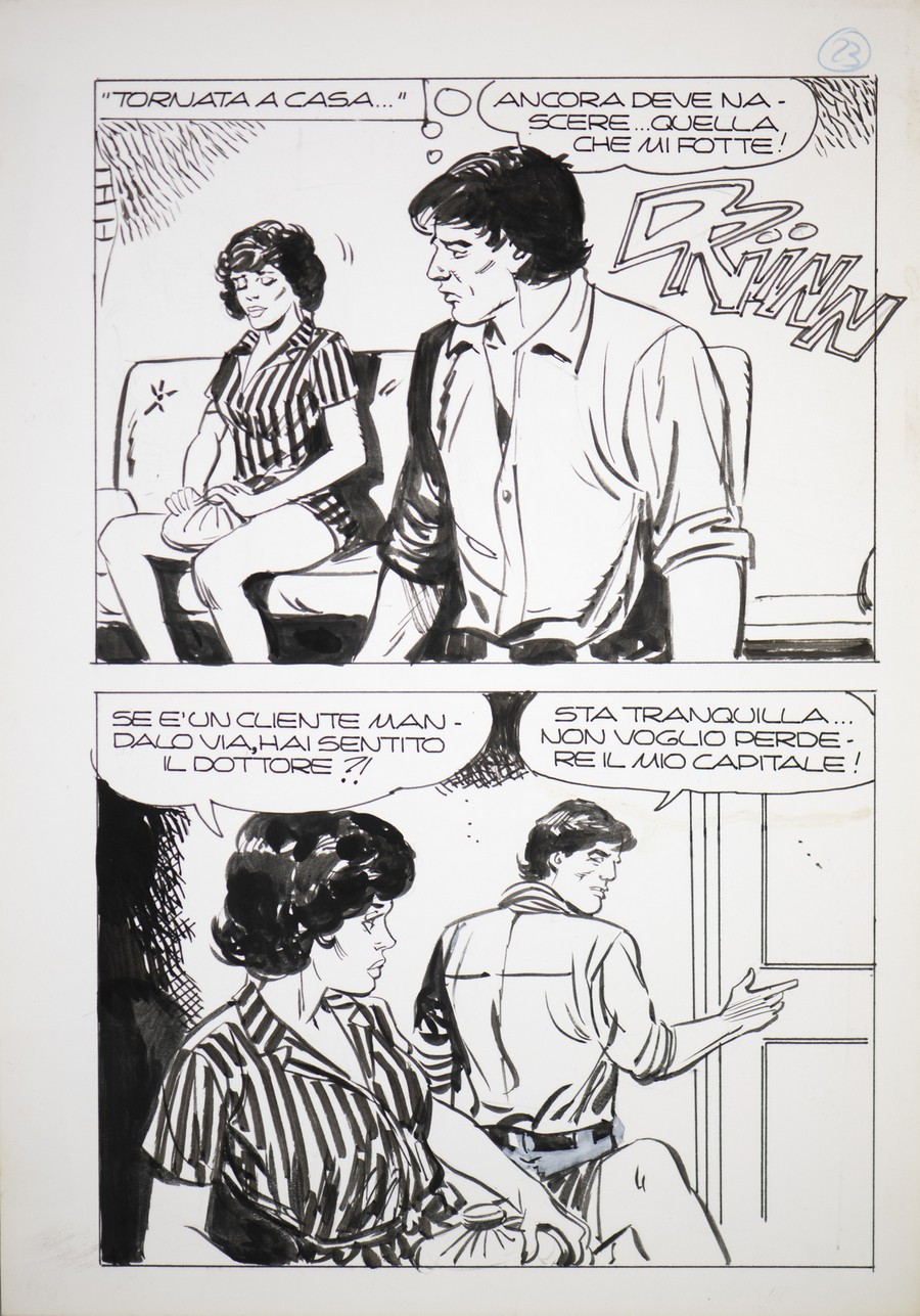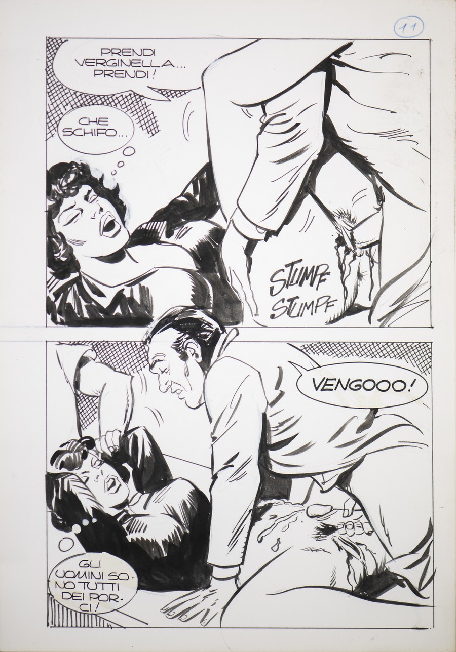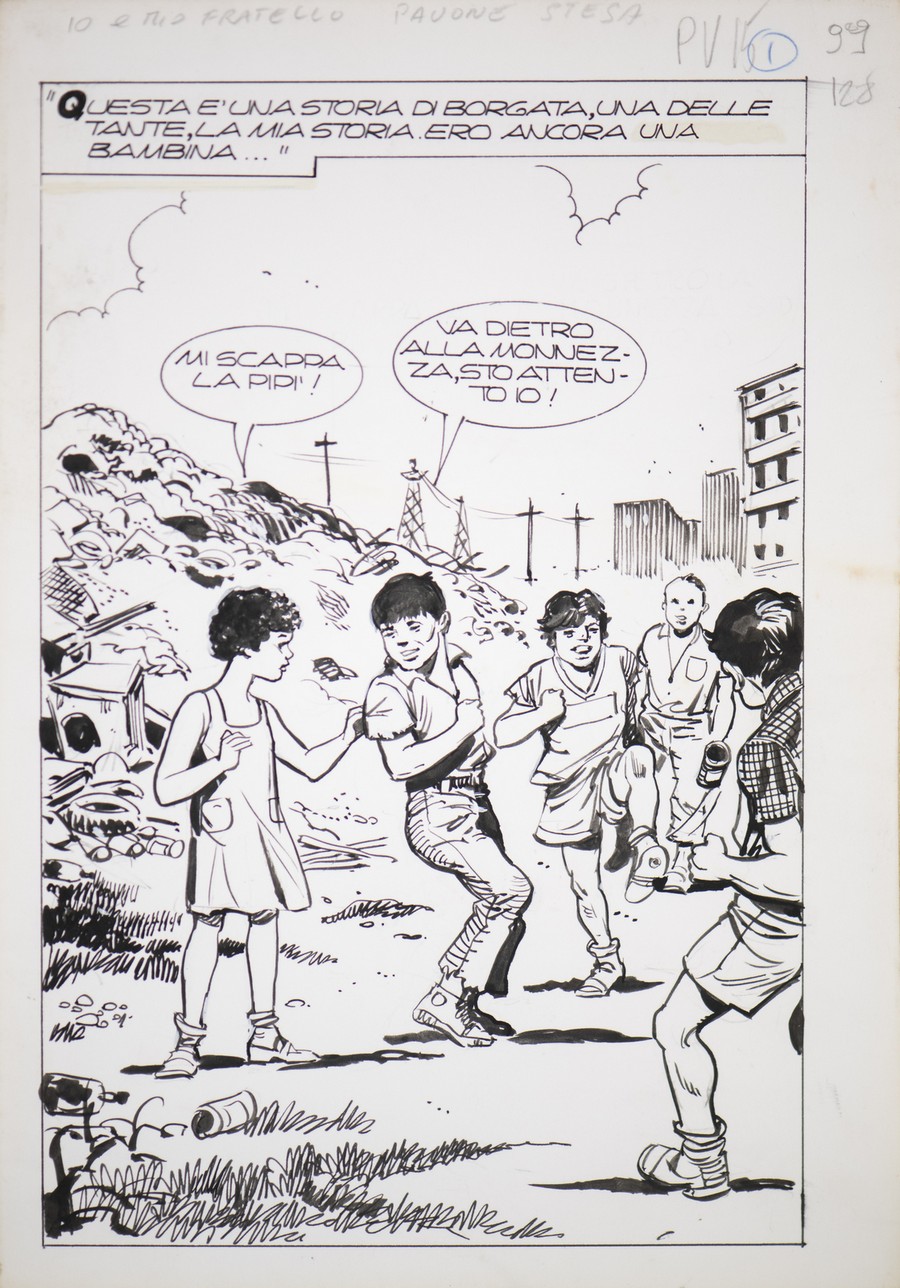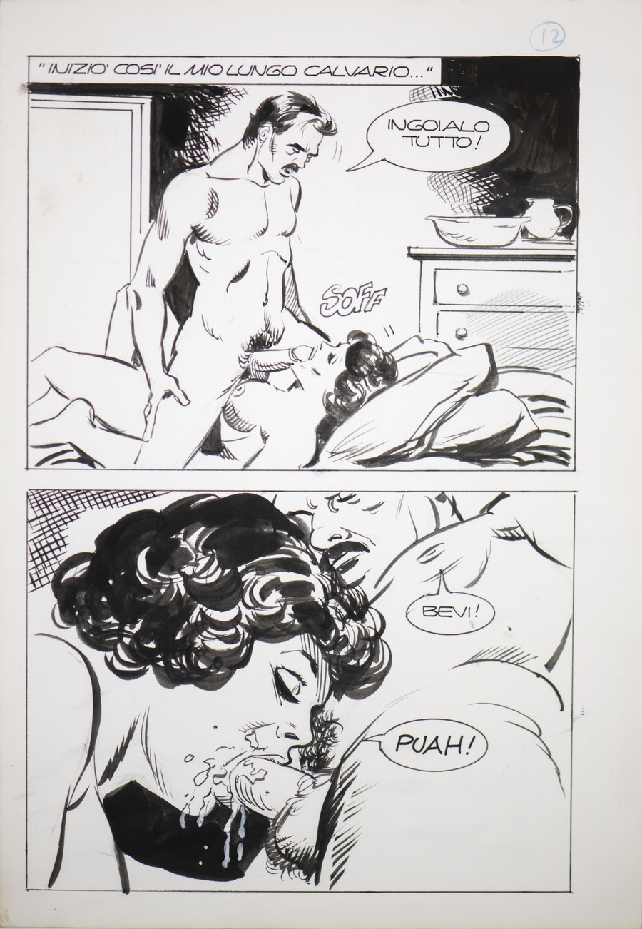 Pavone Ivo (1929 - 2020) Io e mio fratello. . China su carta. Cm 17,00 x 25,00. Una delle rare storie erotiche scritte e disegnate dal grande Ivo Pavone negli anni 70/80.