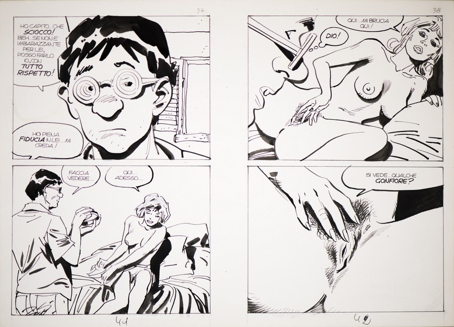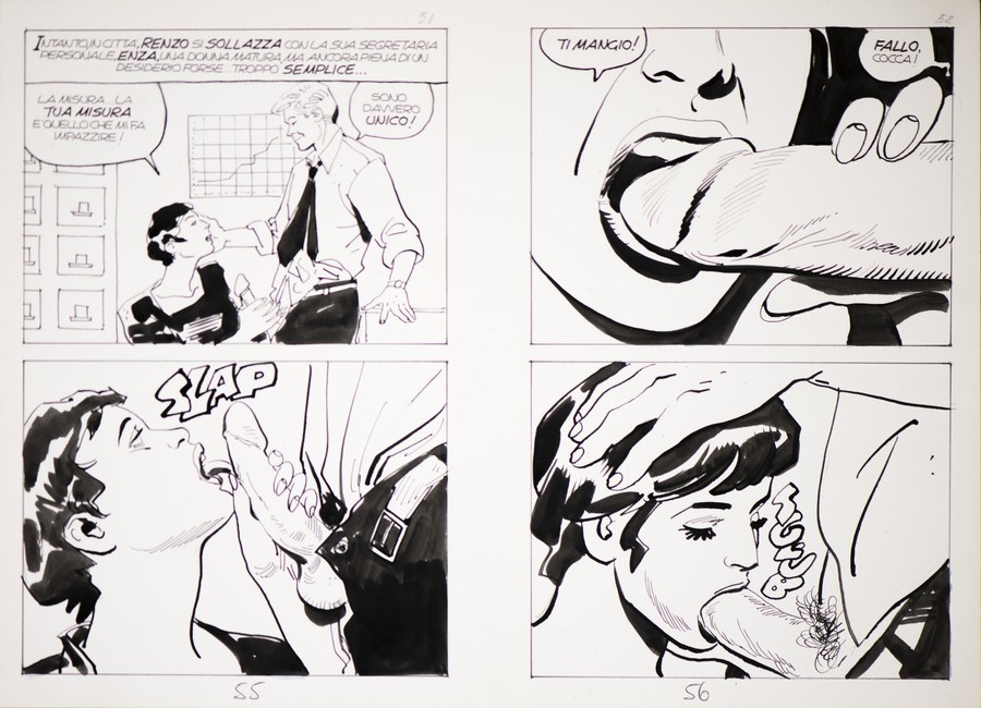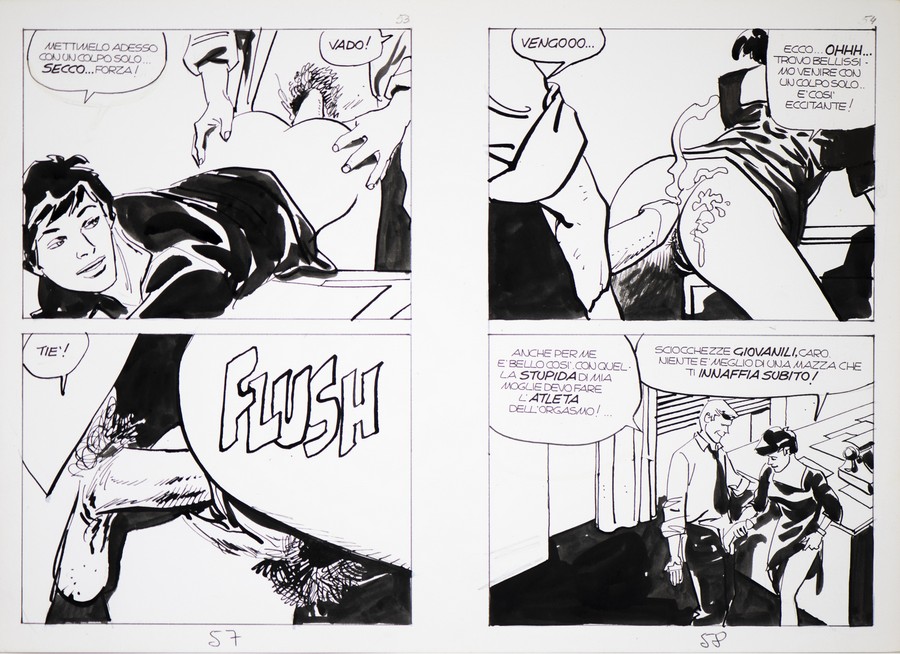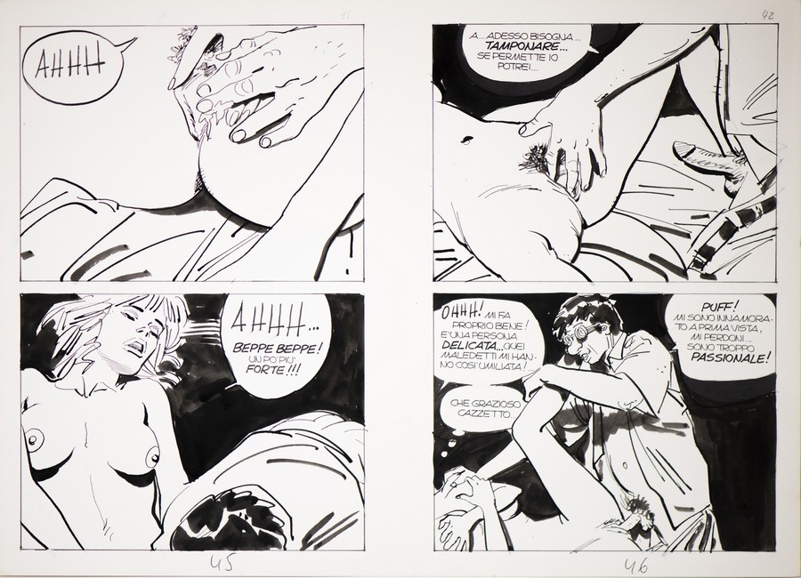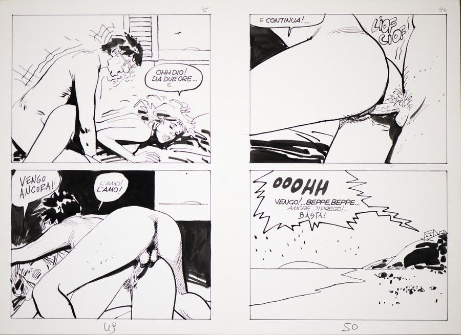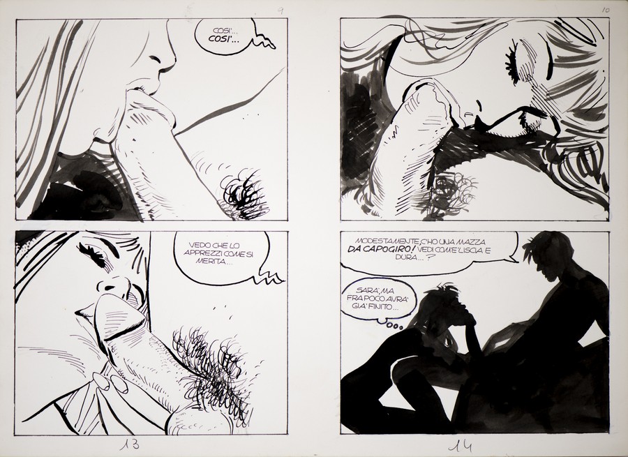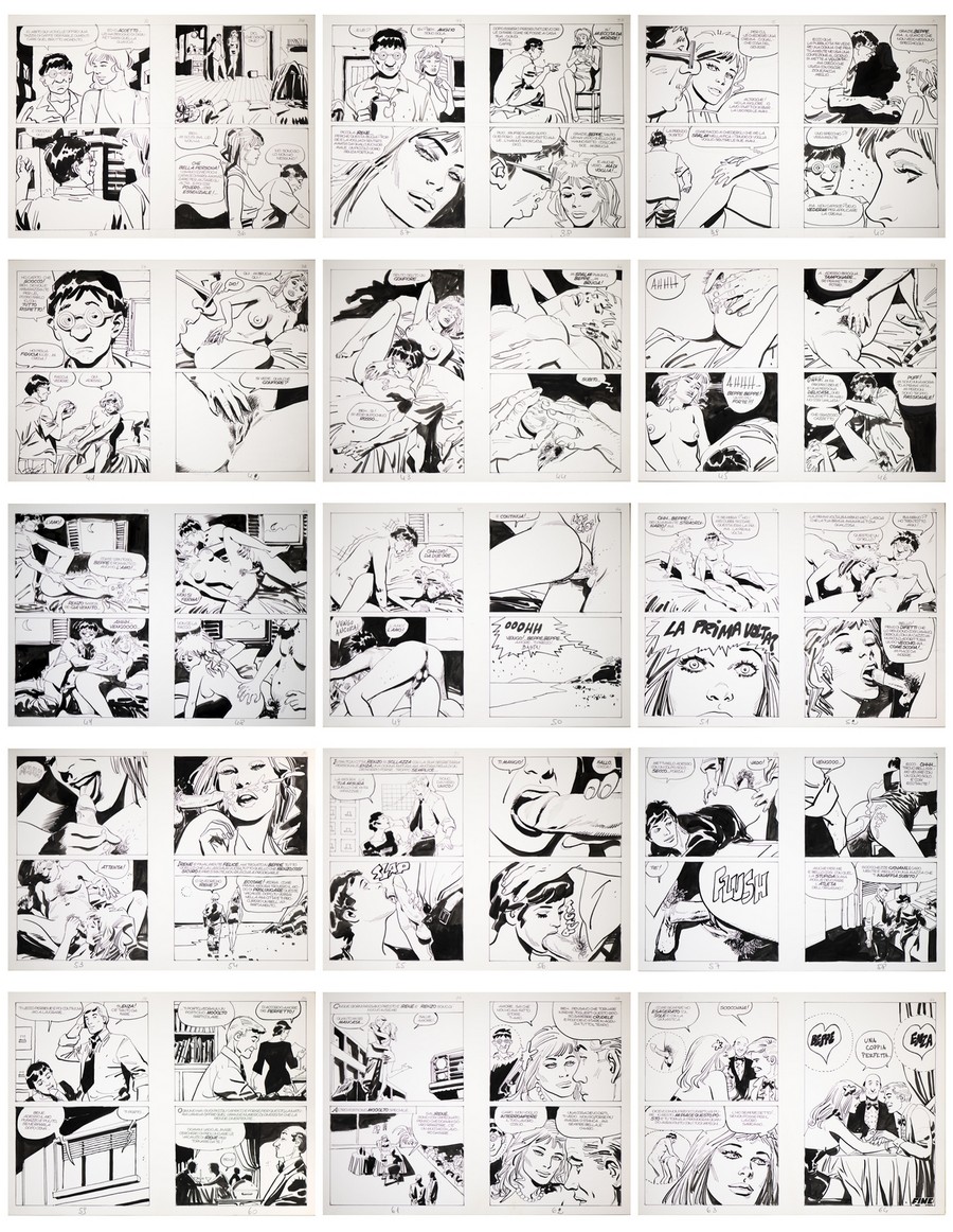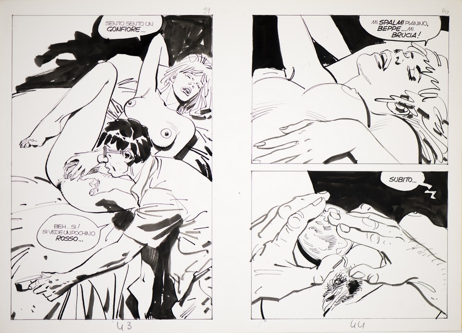 Trigo Gustavo PURO SESSO(STORIA EROTICA INTEGRALE PER ACME). 1986. China su carta. Cm 24,00 x 33,00. STORIA EROTICA COMPLETA SU TRENTA FOGLI DIVISI IN DUE PARTI E APPUNTI VARI