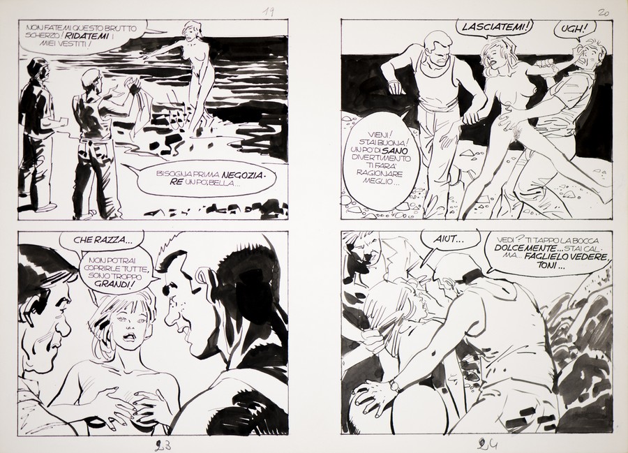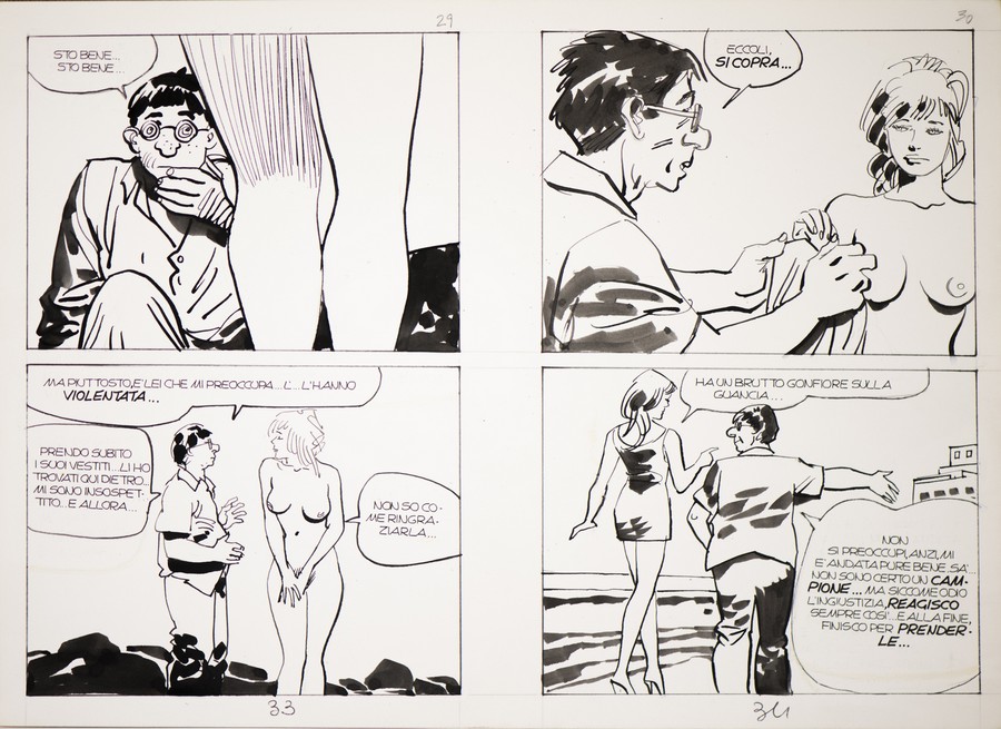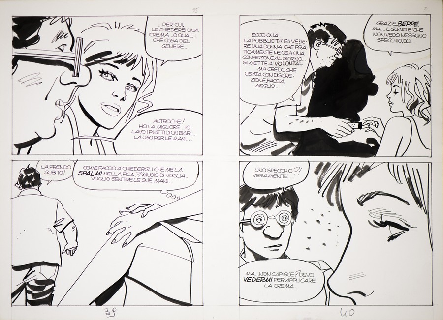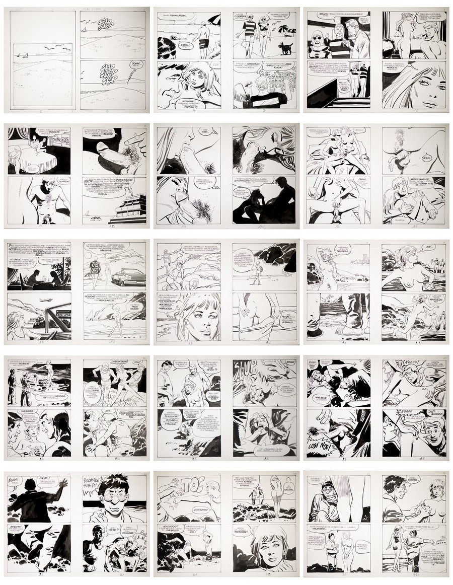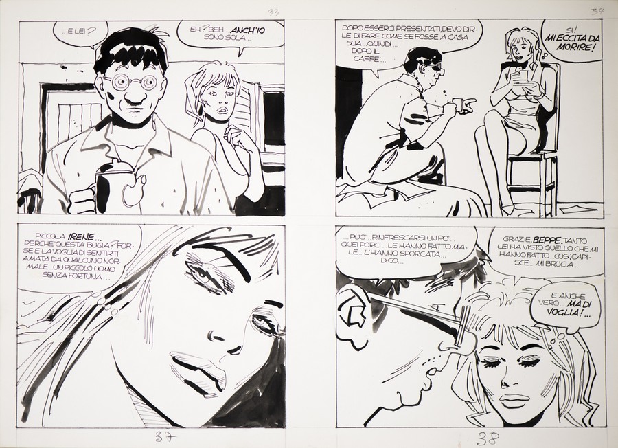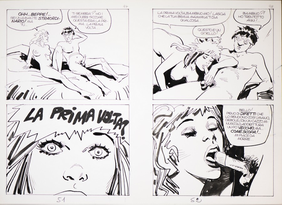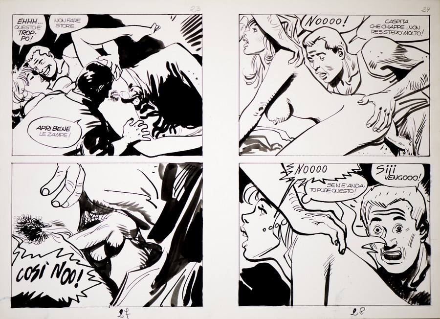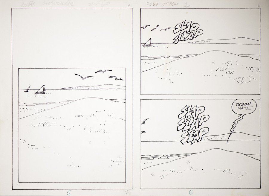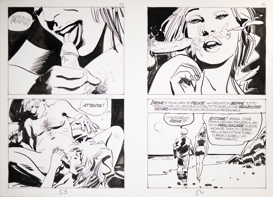 Trigo Gustavo PURO SESSO(STORIA EROTICA INTEGRALE PER ACME). 1986. China su carta. Cm 24,00 x 33,00. STORIA EROTICA COMPLETA SU TRENTA FOGLI DIVISI IN DUE PARTI E APPUNTI VARI