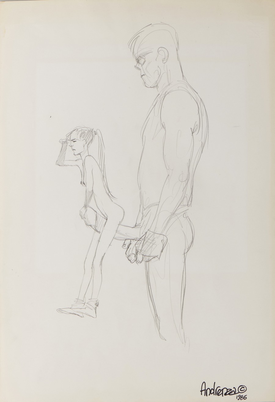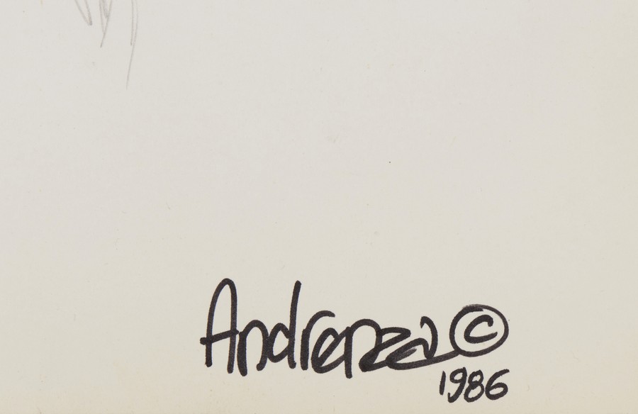 PAZIENZA ANDREA RANK E LUBNA. 1986. Matita su cartoncino. Cm 33,00 x 47,50. firma, data