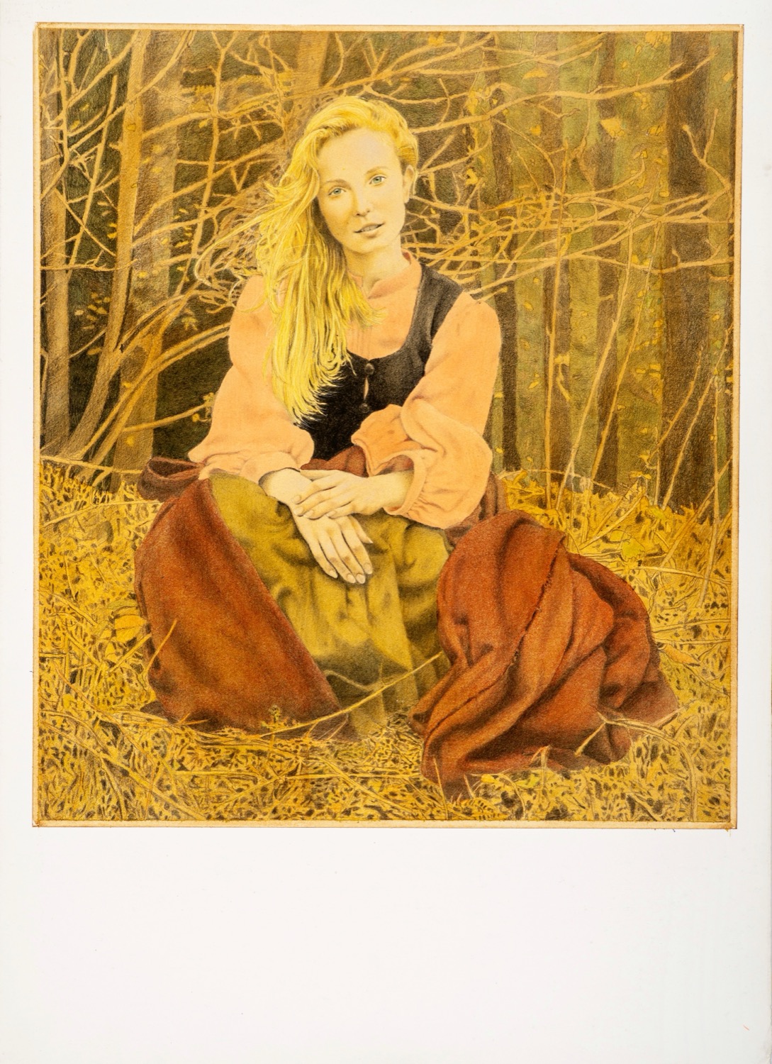 Illustrazione originale realizzata da Ventura pubblicata sul libro "Ritratto di una strega" da Mondadori nel 1991. "I ritratti che compongono questo libro non sono quelli di un‘orrida vecchia e neppure quelli di una dark lady dalla bellezza inquietante, sono i ritratti di una ragazza qualsiasi, d‘una adolescente contadina dalla bellezza acerba e innocente, colta nelle umili e banali occupazioni della sua vita quotidiana. Cosa ha a che fare con le streghe, cosi come siamo abituati ad immaginarle? Con i ritratti di Caterina Farcigli Piero Ventura intende rispondere a questa domanda, mostrando visivamente quello che gli studiosi, da molto tempo ormai, hanno ricavato dai documenti e dai verbali dei processi per stregoneria, ma che la mentalità comune stenta ancora ad accettare. "