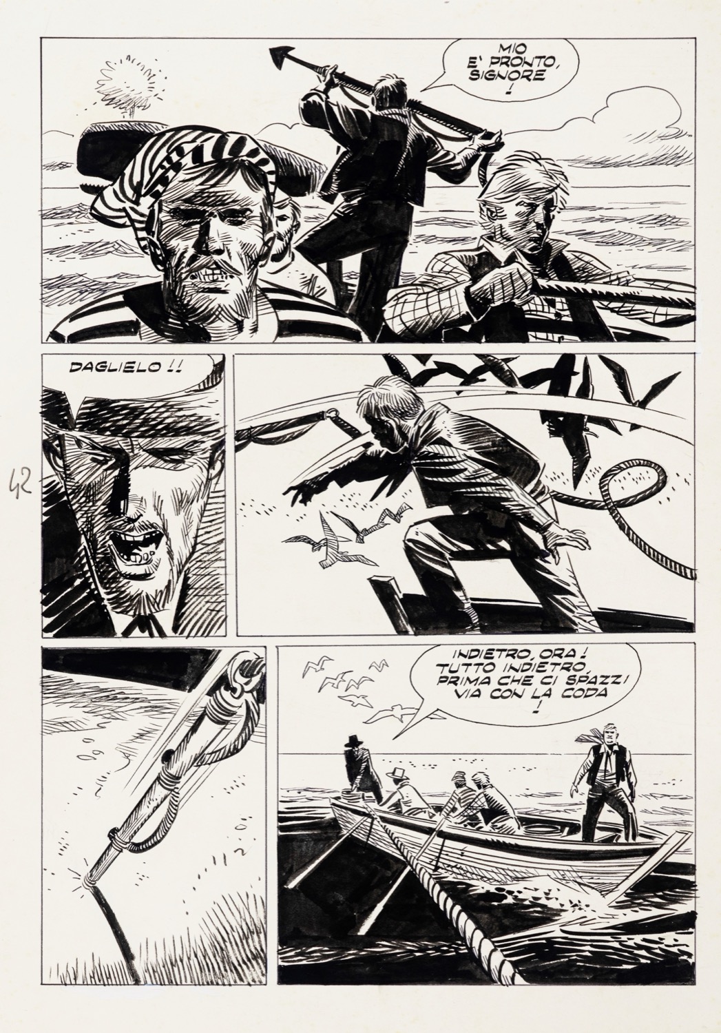 Tavola originale realizzata da Alessandrini per "Caccia sul mare", edita su Ken Parker n. 9 a pag. 42 dalla Bonelli nel 1978.