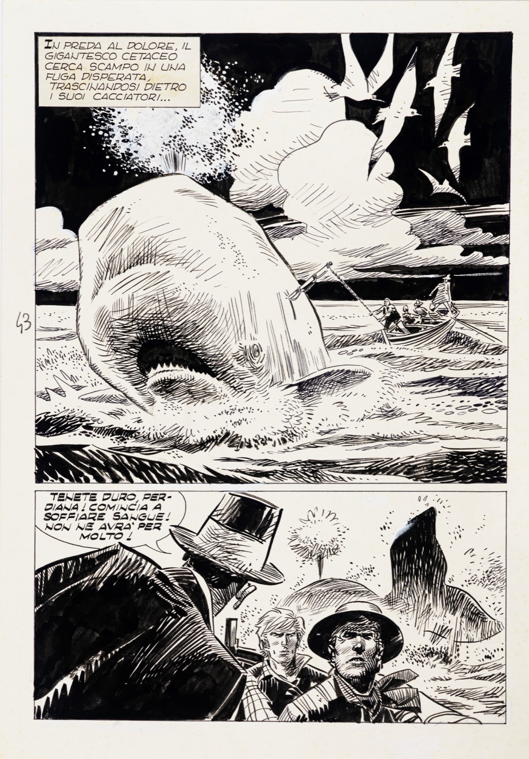 Tavola originale realizzata da Alessandrini per "Caccia sul mare", edita su Ken Parker n. 9 a pag. 43 dalla Bonelli nel 1978.