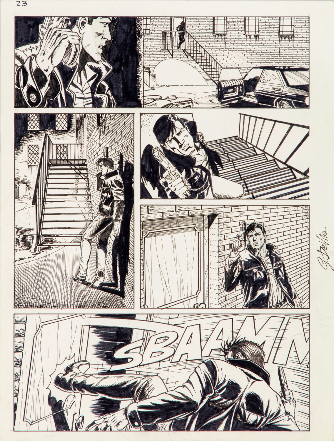 Tavola originale realizzata da De Vita per "La luna del cacciatore", edita su Lazarus Ledd n. 6 a pag. 23 dalla Bonelli nel 1993. Firmata.
