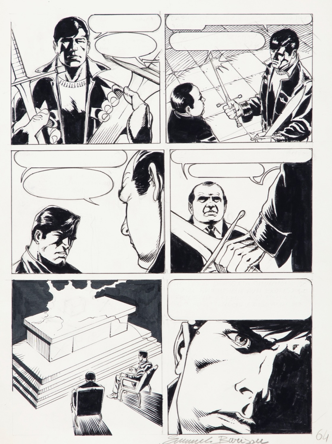 Tavola originale realizzata da Barison per "Metallika", edita su Lazarus Ledd n. 14 a pag. 64 dalla Bonelli nel 1994. Firmata.