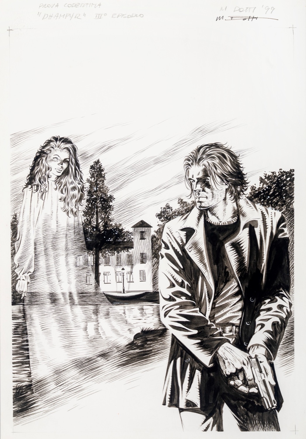 Originale di copertina inedito realizzato da Dotti per Dampyr n. 3. Si allega la prova colore. Firmato e datato.
