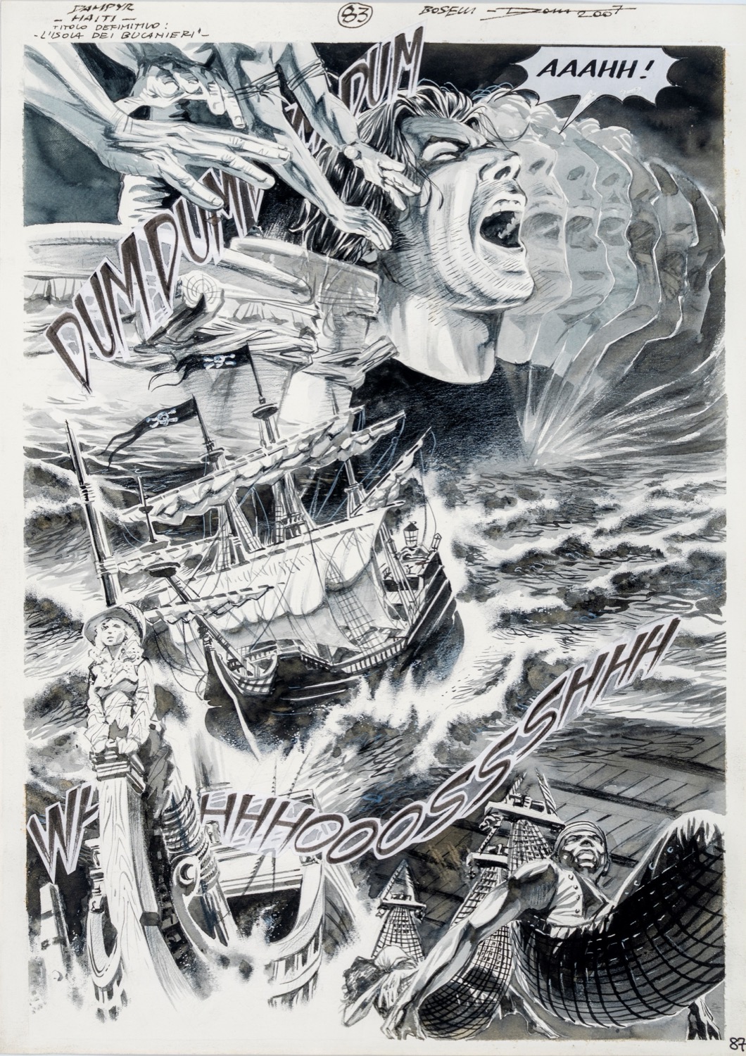 Splash page originale realizzata da Dotti per "L'isola dei bucanieri ", edita su Dampyr n. 93 a pag. 87 dalla Bonelli nel 2007. Firmata e datata.