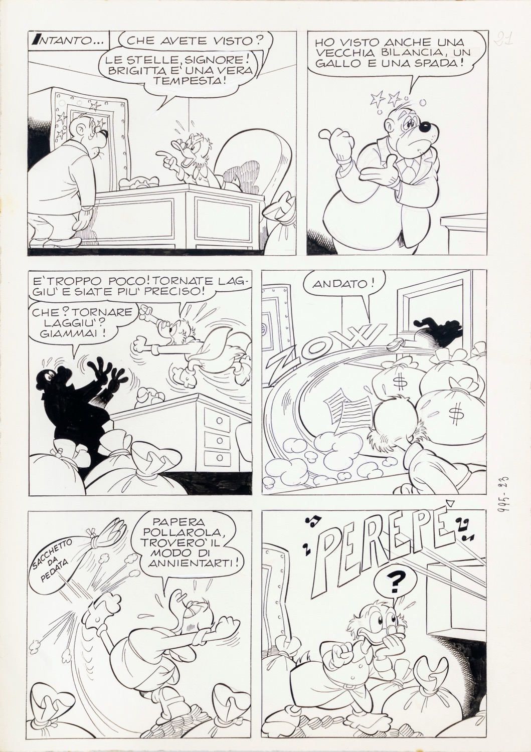 Tavola originale realizzata da Chierchini per "Zio Paperone e la bilancia di Brenno", edita su Topolino n. 995 a pag. 21 nel dicembre 1974. Lievi pieghe.