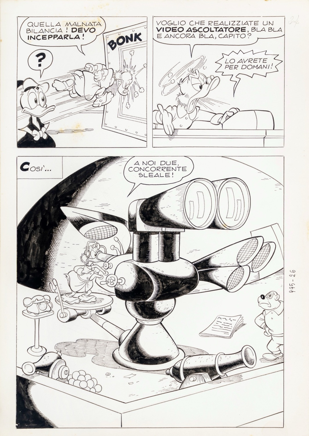 Tavola originale realizzata da Chierchini per "Zio Paperone e la bilancia di Brenno", edita su Topolino n. 995 a pag. 24 nel dicembre 1974. Lievi pieghe.