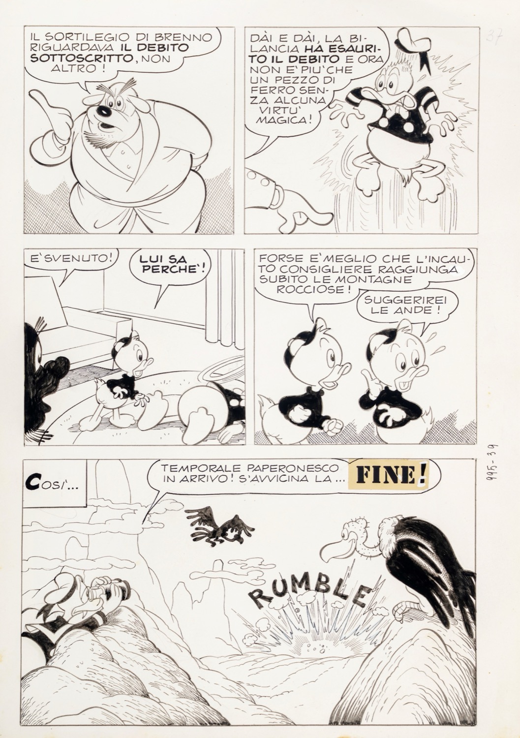 Tavola originale realizzata da Chierchini per "Zio Paperone e la bilancia di Brenno", edita su Topolino n. 995 a pag. 37 nel dicembre 1974. Lievi pieghe.