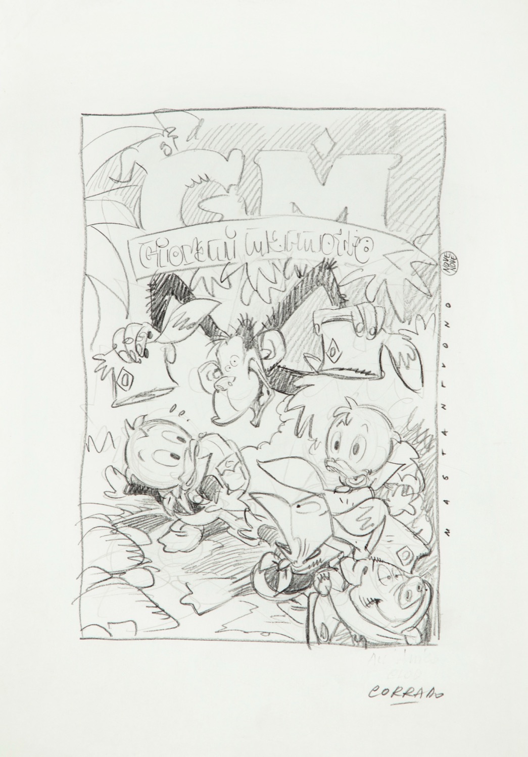 Preliminare di copertina realizzato da Mastantuono per un numero delle Giovani Marmotte. Lievi pieghe ai margini. Firmato e datato.