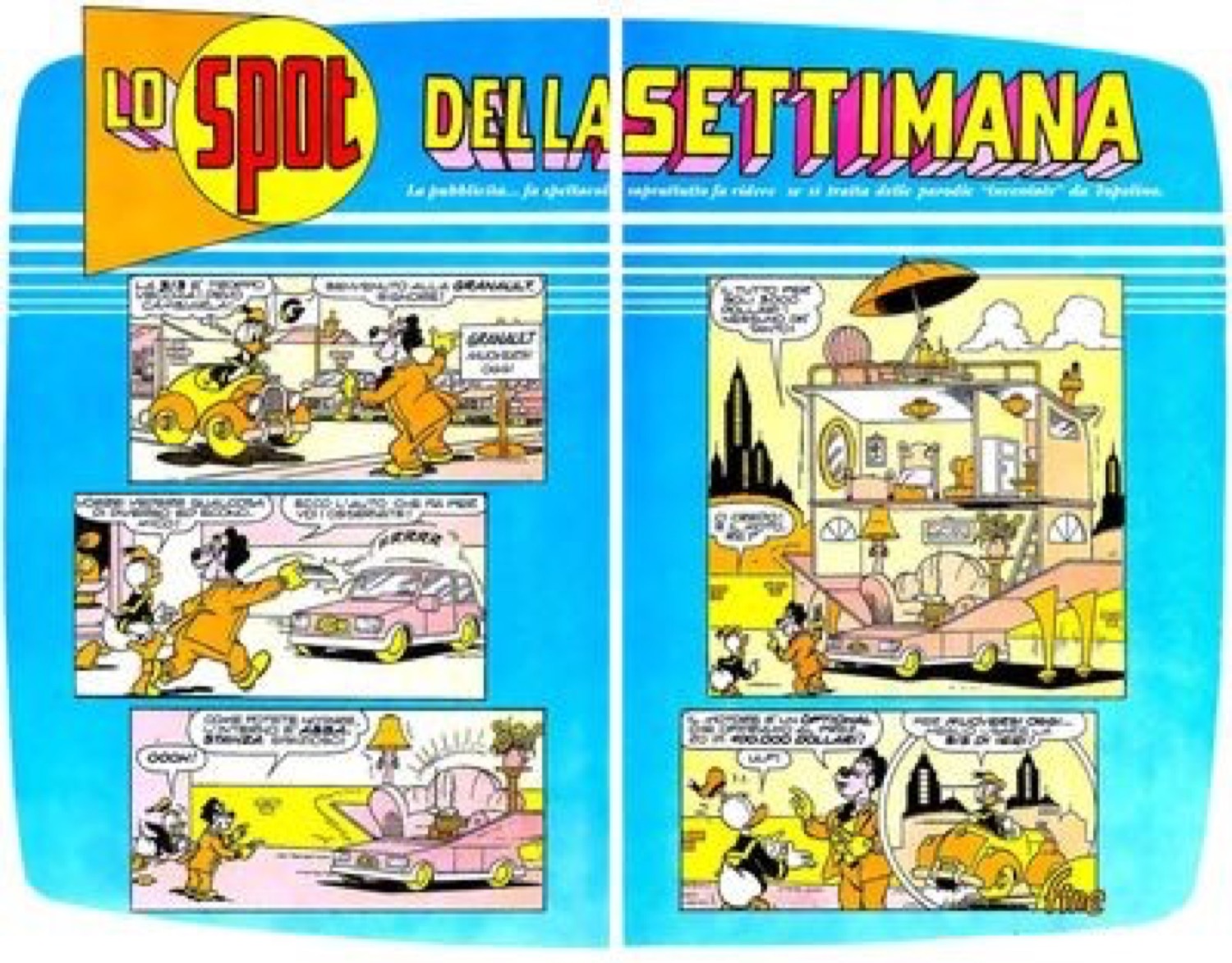 Storia completa composta da 2 tavole originali realizzate da Scala per "Lo spot della settimana", edita su Topolino n. 1677 nel gennaio 1988. Presenza di fotocopie nella prima pagina.