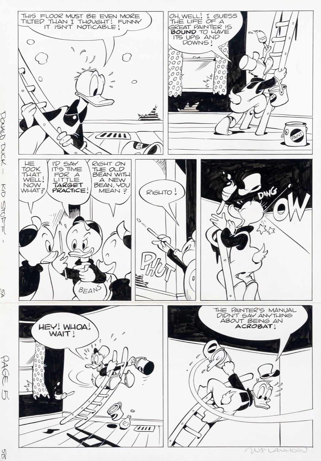 Tavola originale realizzata da Van Horn per "Kid Stuff", pubblicata per la prima volta negli Stati Uniti su Donald Duck Adventures n. 16 a pag. 5 nel settembre 1991. Su due pannelli. Firmata.