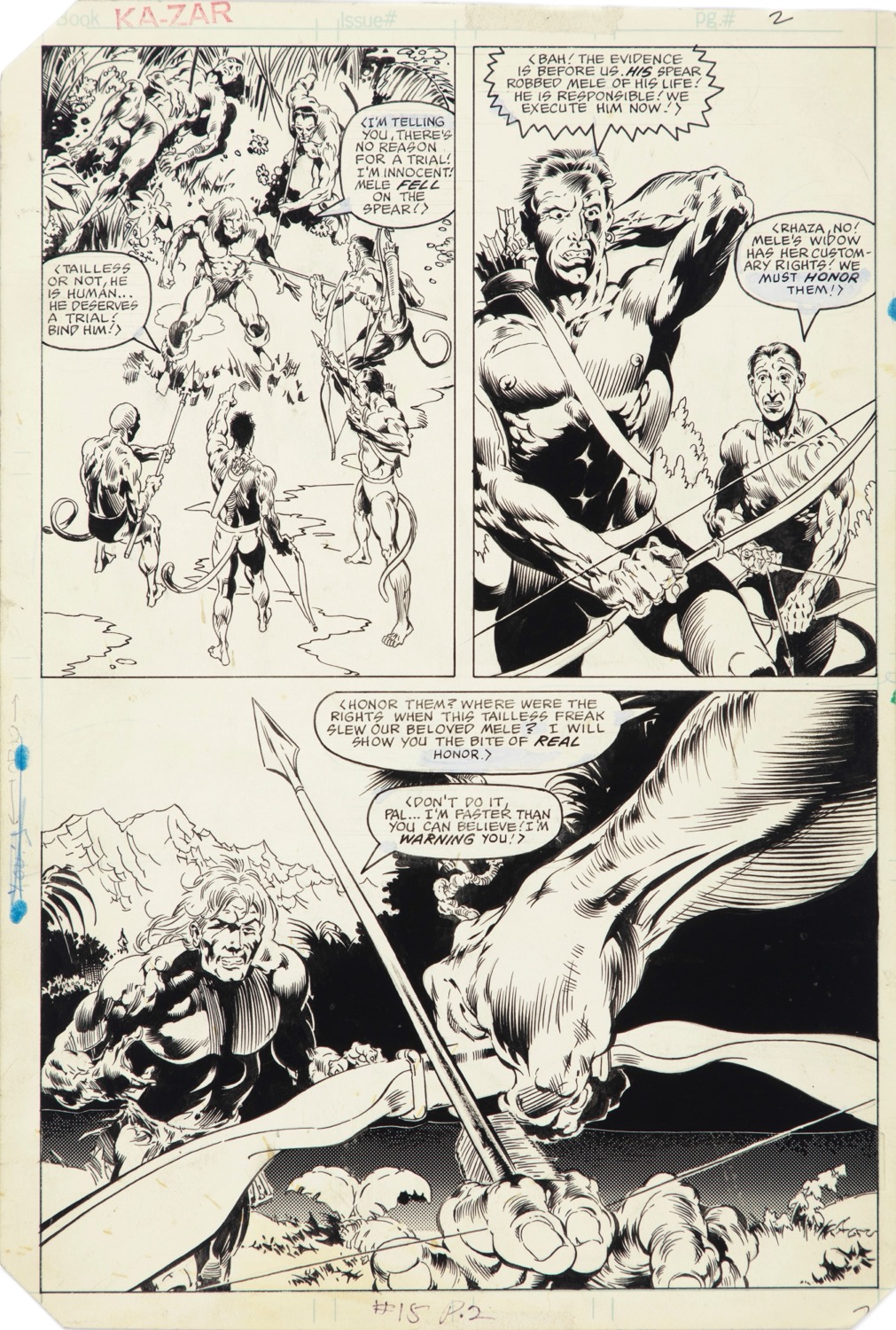 Tavola originale realizzata da Anderson per "A Lovely Day for an Execution!", edita su Ka-Zar the Savage n. 15 a pag. 2 dalla Marvel nel 1982.