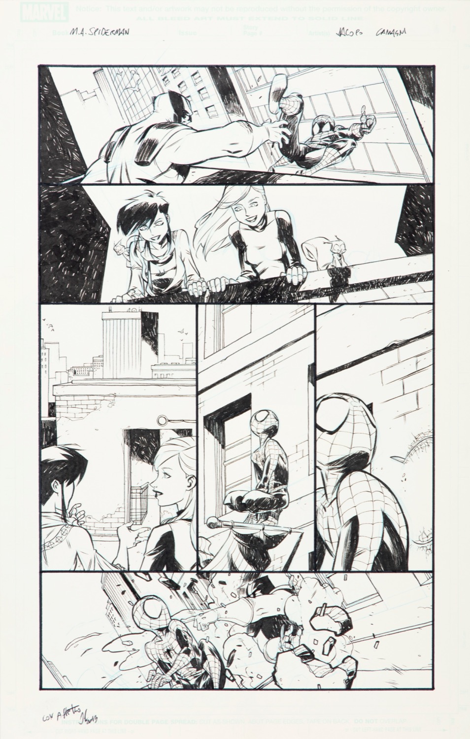 Tavola originale realizzata da Camagni per "Marvel Adventures Spider-Man" n. 7, edita a pag. 4 dalla Marvel nel 2011. Firmata.