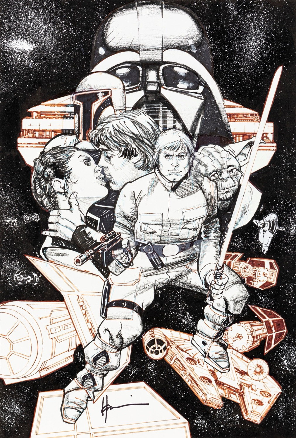 Originale di copertina realizzato da Chaykin per la variant cover della rivista "Star Wars Insider" n. 122, edito dalla Comic Store Exclusive edition nel 2010. All‘interno di questo numero speciale, che segna la centesima uscita della rivista specializzata sulla saga di Star Wars, si trova anche un poster gigante che riproduce l‘illustrazione qui presentata. Firmata.