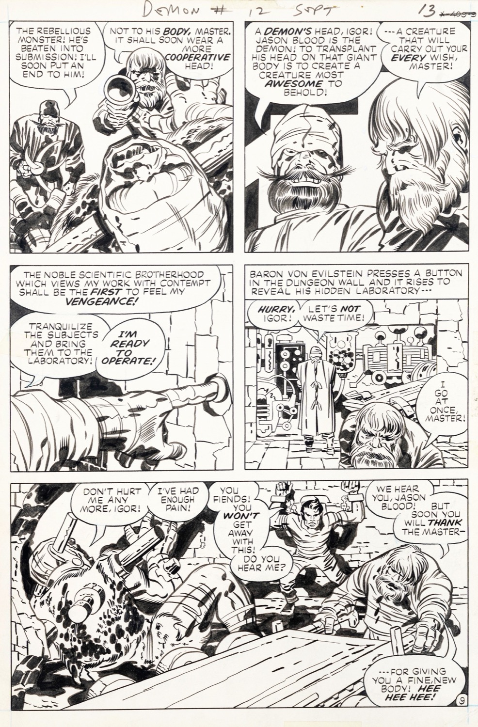 Tavola originale realizzata da Kirby per "Rebirth of Evil!", edita su The Demon n. 12 a pag. 9 dalla DC nel 1973. Lieve piega all'angolo inferiore destro.