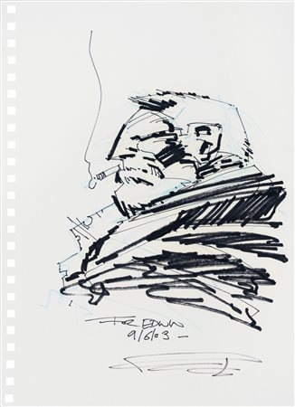 Disegno originale realizzato da Miller nel 2003 raffigurante Marv, uno dei personaggi principali della celebre saga di "Sin City". Firmato, datato e dedicato.