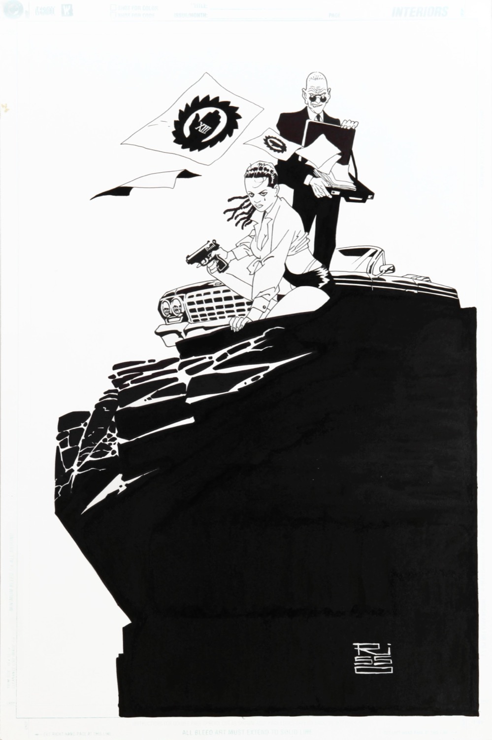 Disegno originale realizzato da Risso raffigurante Agent Graves e Dizzy Cordova, tra i protagonisti della celebre serie di "100 Bullets" edita da Vertigo tra il 1999 e il 2009. Firmato.