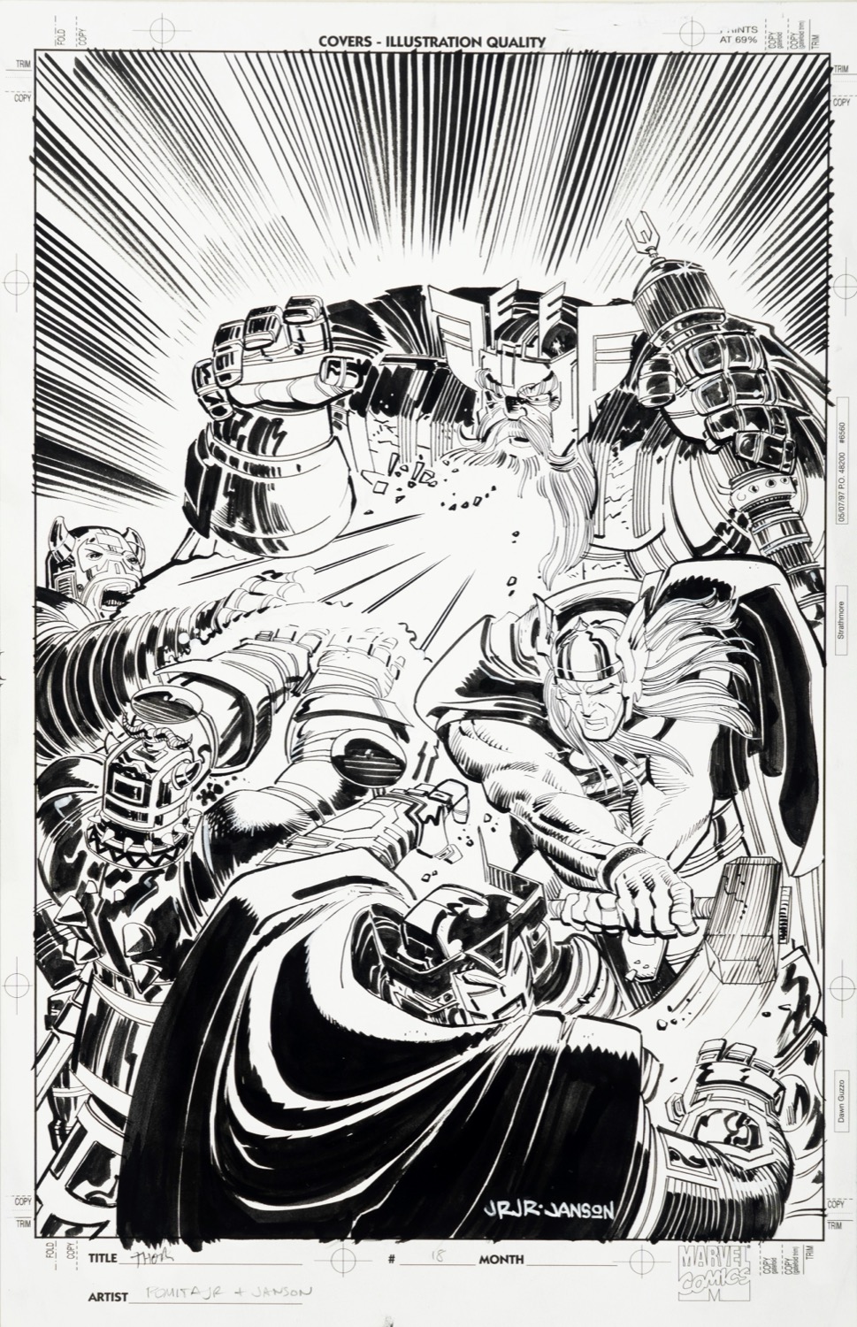 Originale di copertina realizzato da Romita Jr. per Thor n. 18, edito dalla Marvel nel 1999. Tra le copertine di maggior impatto mai realizzate da Romita Jr. per questa serie. Chine di Klaus Janson. Firmato da entrambi gli autori.