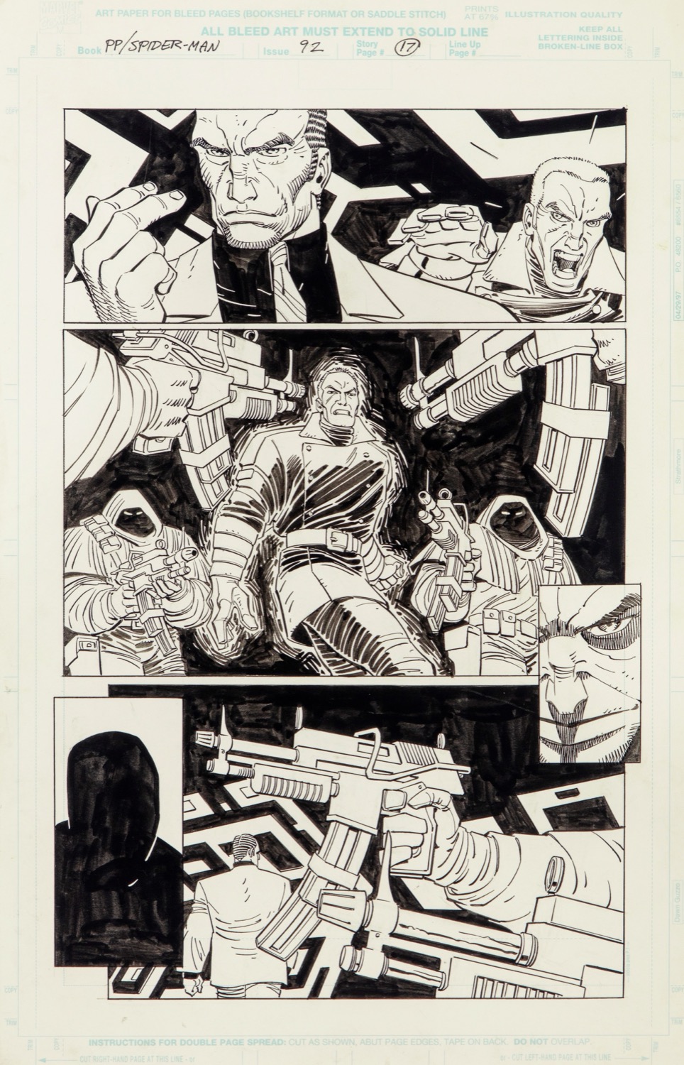 Tavola originale realizzata da Romita Jr. per "Stuck in the Middle with You!", edita su Spider-Man n. 92 a pag. 17 dalla Marvel 1998.