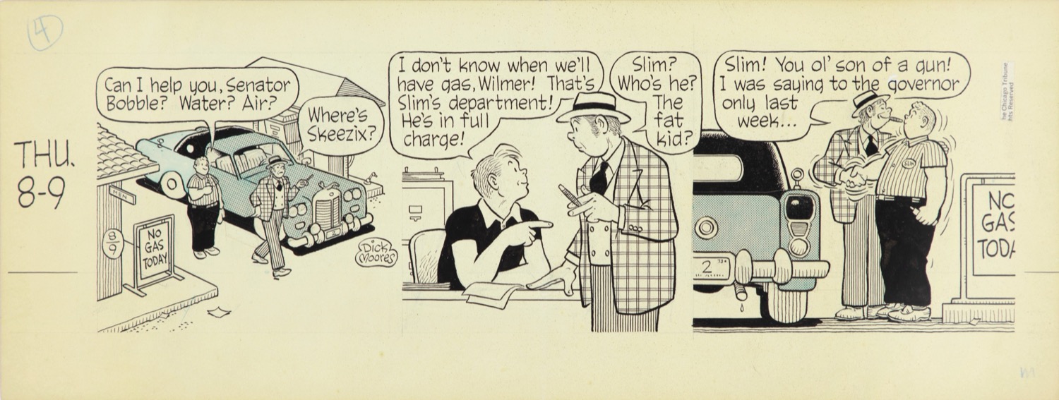 Striscia giornaliera anni '70 per "Gasoline Alley". Firmata e datata.