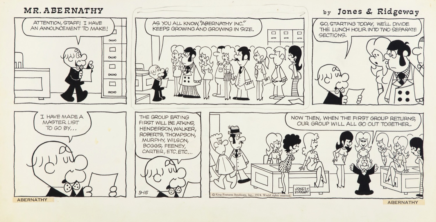 Tavola domenicale del 15/09/1974 per "Mr. Abernathy". Firmata e datata.