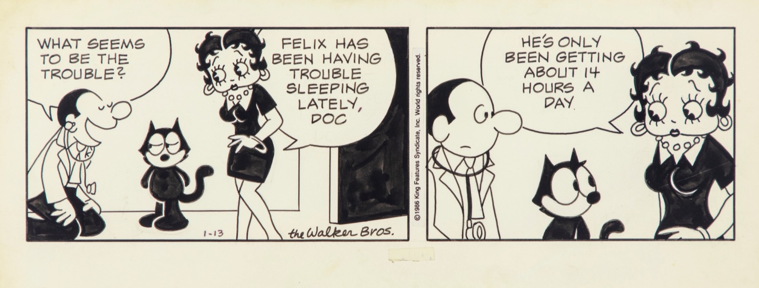 Striscia giornaliera del 13/01/1986 per "Betty Boop and Felix". Firmata e datata.