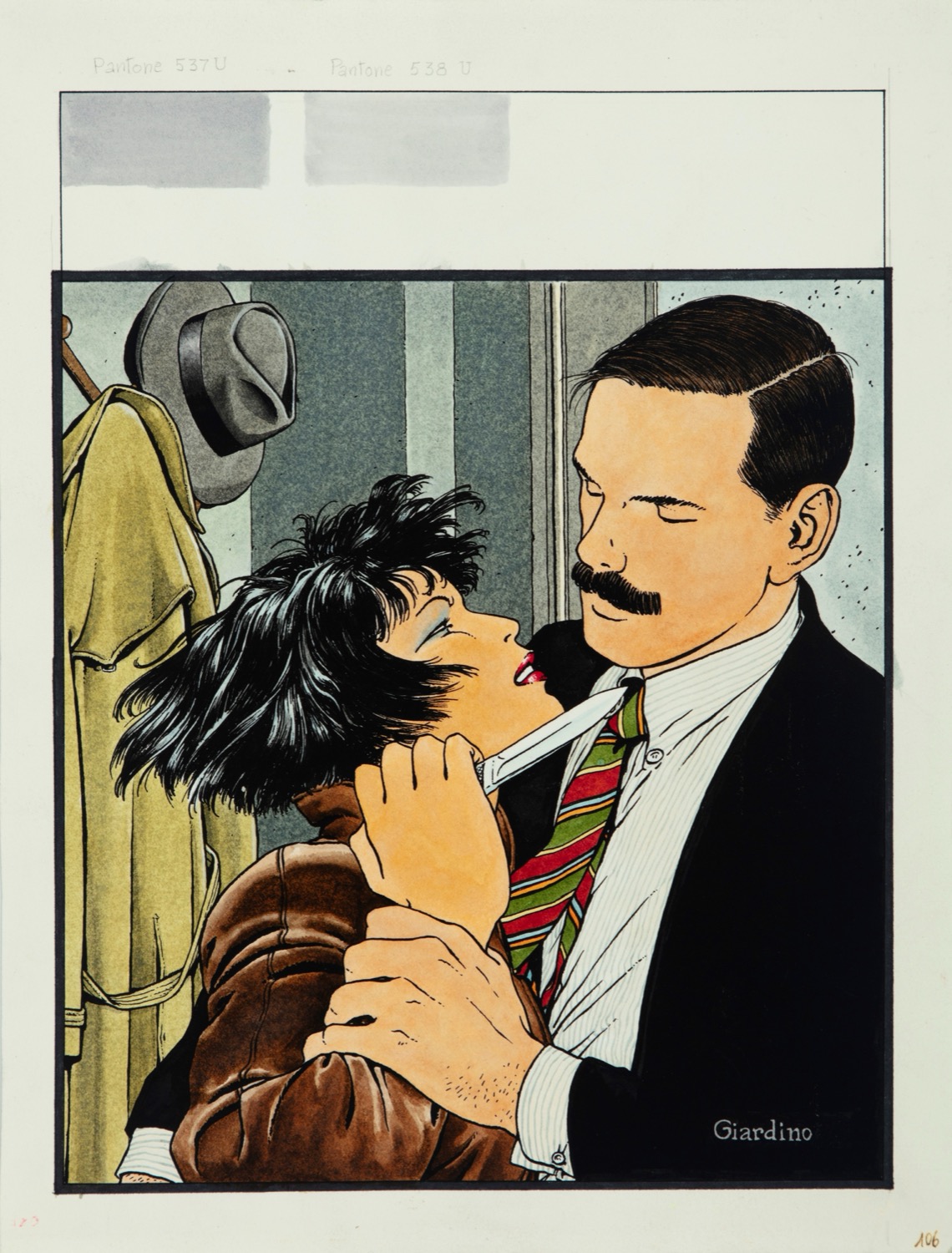 Originale di copertina realizzato da Giardino per la prima pubblicazione di "Shit City", celebre avventura di Sam Pezzo edita su Gli albi di Orient Express n. 7 dalle Edizioni L‘isola Trovata nel 1985. Una copertina storica che ha segnato un‘epoca del fumetto europeo, Giardino decise di aggiungere uno sfondo al disegno originale (coprendo la data) per la ristampa francese della storia pubblicata sul volume "Sam Pezzo: Shit City" dalla Glénat nel 1987. Firmata al fronte e al retro con il timbro dell‘autore.