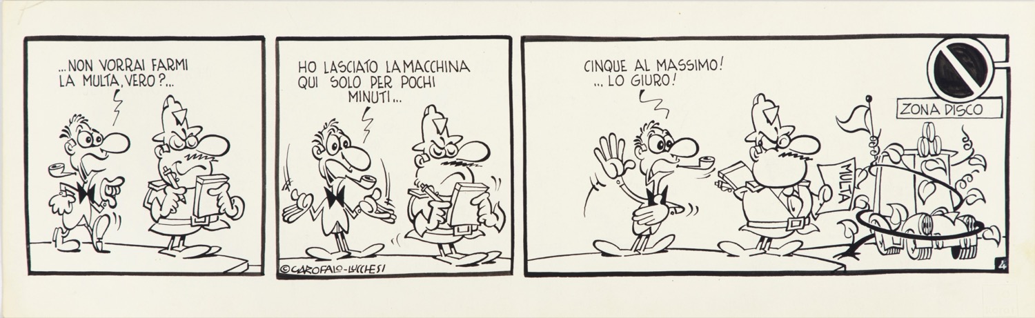 Striscia originale realizzata da Lucchesi per la serie "Il vigile e l'automobilista", edita durante gli anni '90. Firmata.