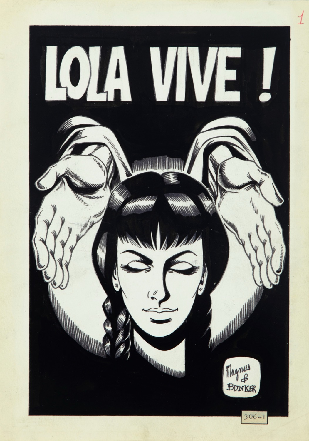 Title page originale realizzata da Magnus per "Lola vive!", edita su Kriminal n. 306 a pag. 1 dalla Corno nel 1971. Firmata.