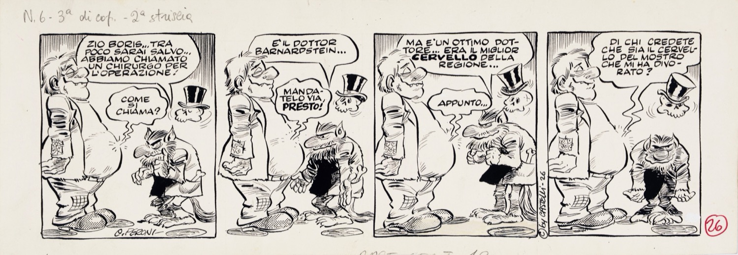 Striscia n. 26 realizzata da Peroni per "Zio Boris", edita sulla rivista Horror da Gino Sansoni nel 1971. Testi di Alfredo Castelli. Firmata.